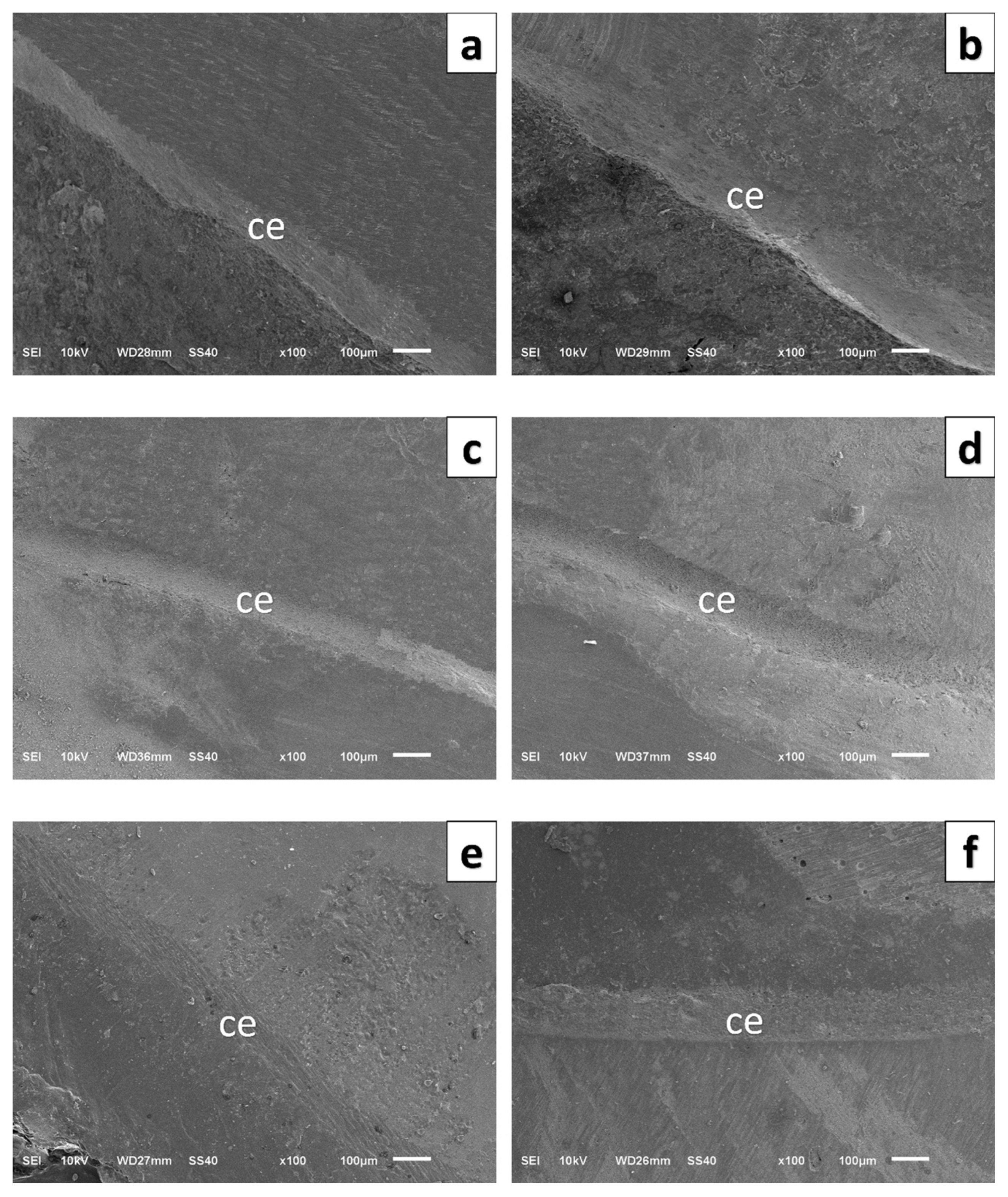 - Rohym, S.M.; Badra, H.; Nassar, H. Comparative evaluation of marginal adaptation and fatigue resistance of endodontically treated premolars restored with direct and indirect coronal restorations: An in vitro study. BMC Oral Health 2024, 24, 696. [Google Scholar] [CrossRef]