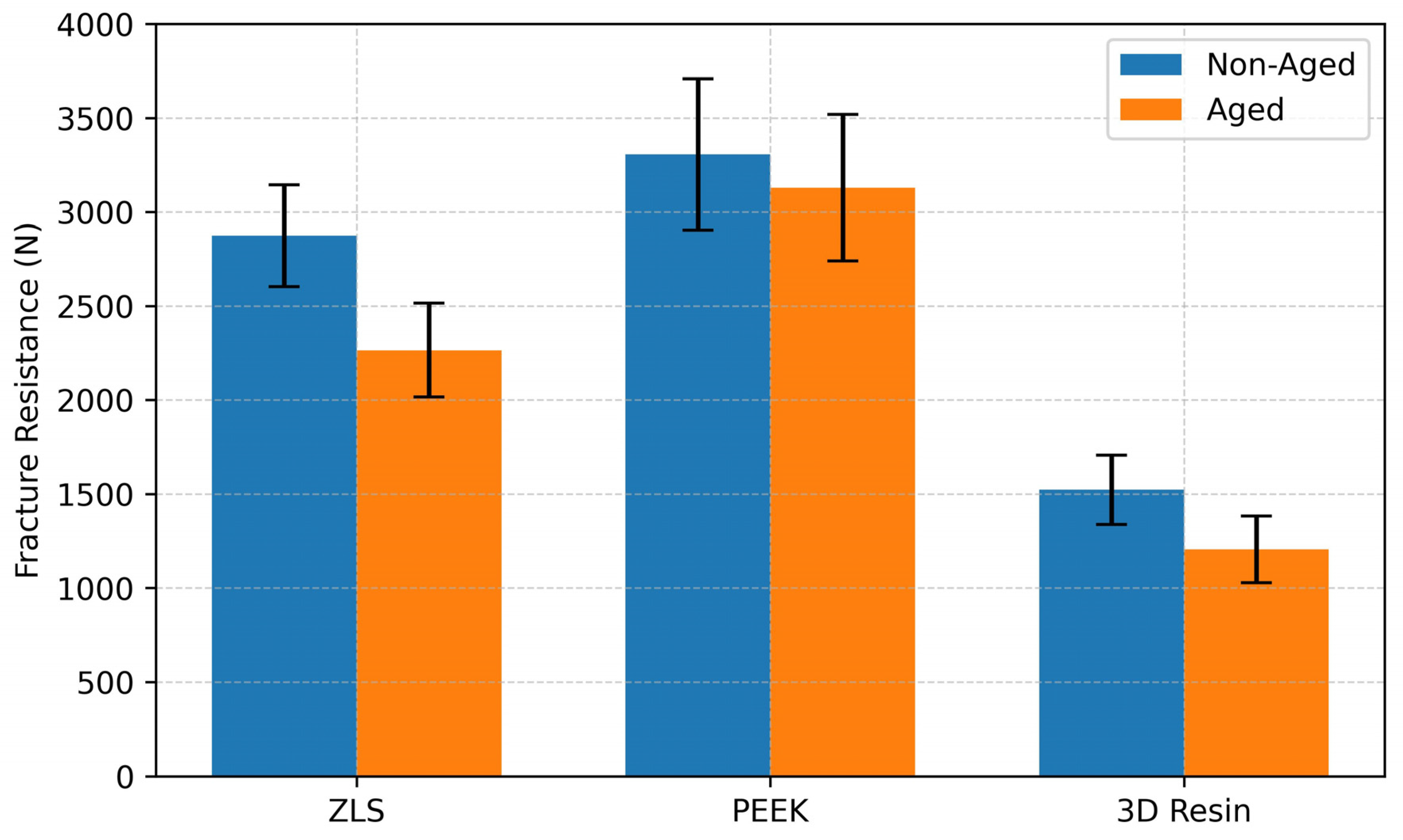 - Abo-Elsoud, A.A.E.; Mohamady, E.M.; Fathi Abdou, N.E.-S. Thermomechanical aging effects on vertical marginal gap and fracture resistance: A comparative study of Bioflx and traditional pediatric crowns. BMC Oral Health 2024, 24, 1334. [Google Scholar] [CrossRef]
