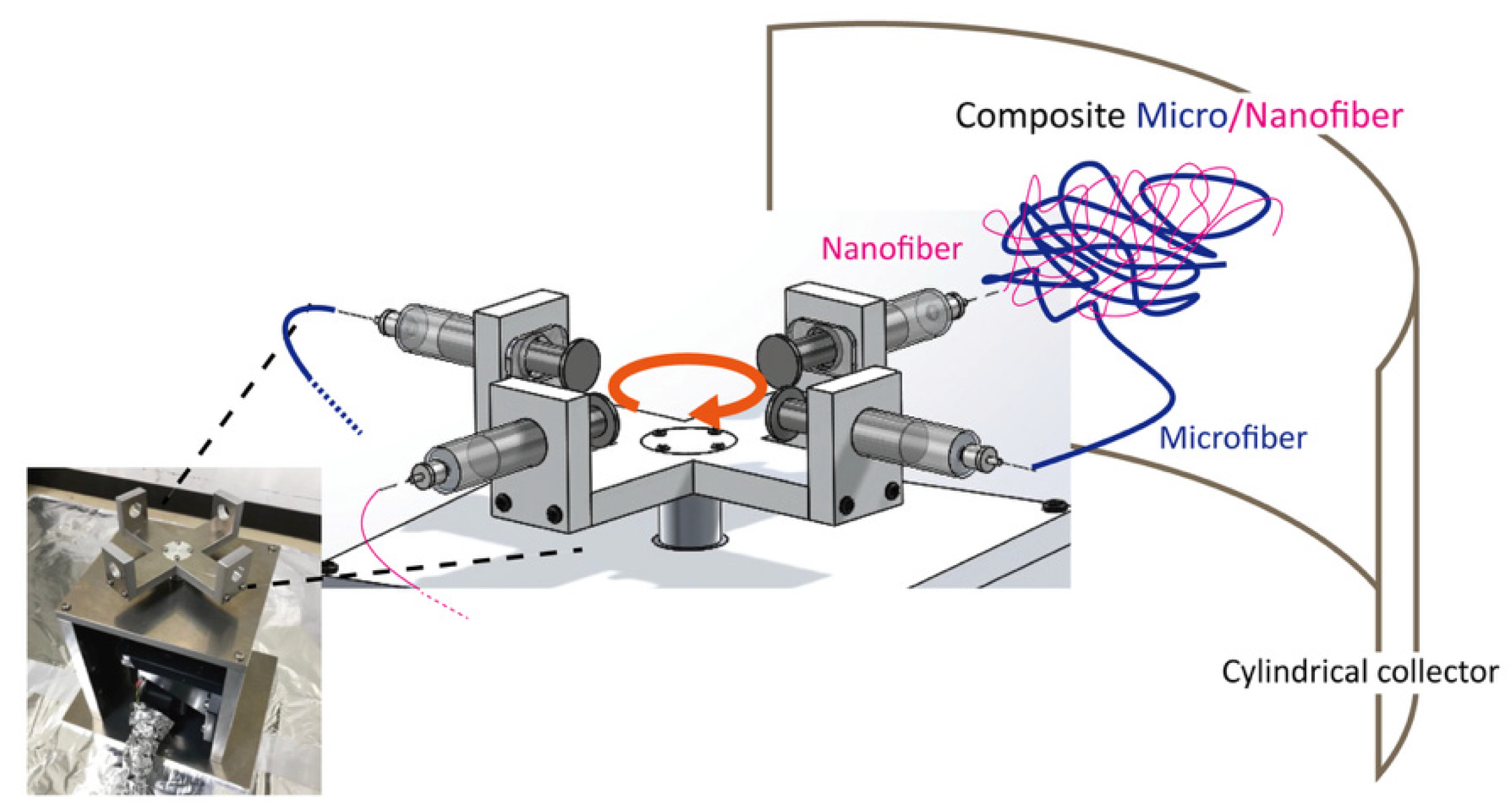 Chicago/Turabian StyleShinagawa, Asuka, and Shogo Miyata. 2026. "Centrifugal Fiber-Spinning Device Using Two Pairs of Counter-Facing Syringes for Fabricating Composite Micro/Nanofibers and Three-Dimensional Cell Culture" Polymers 18, no. 1: 16. https://doi.org/10.3390/polym18010016