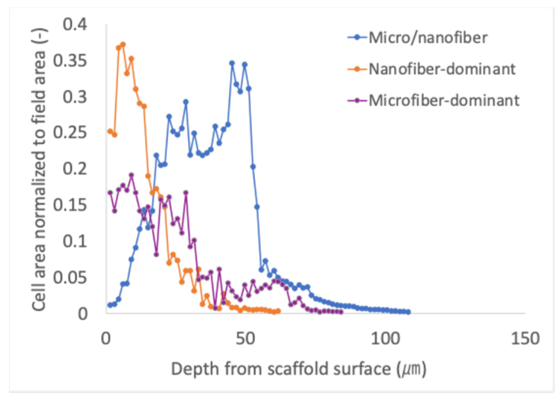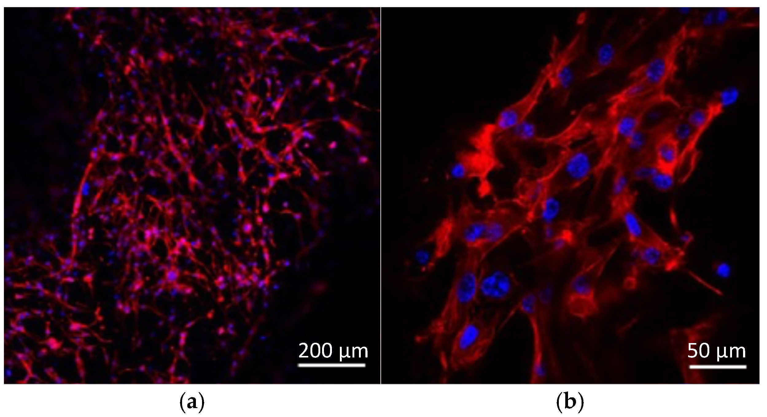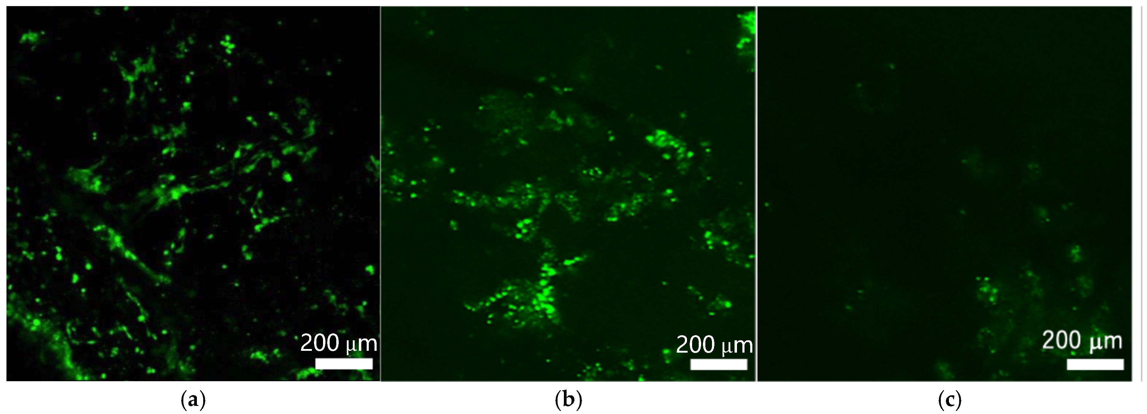 3.3. Cell Viability and Morphology on Composite Micro/Nanofiber Scaffolds