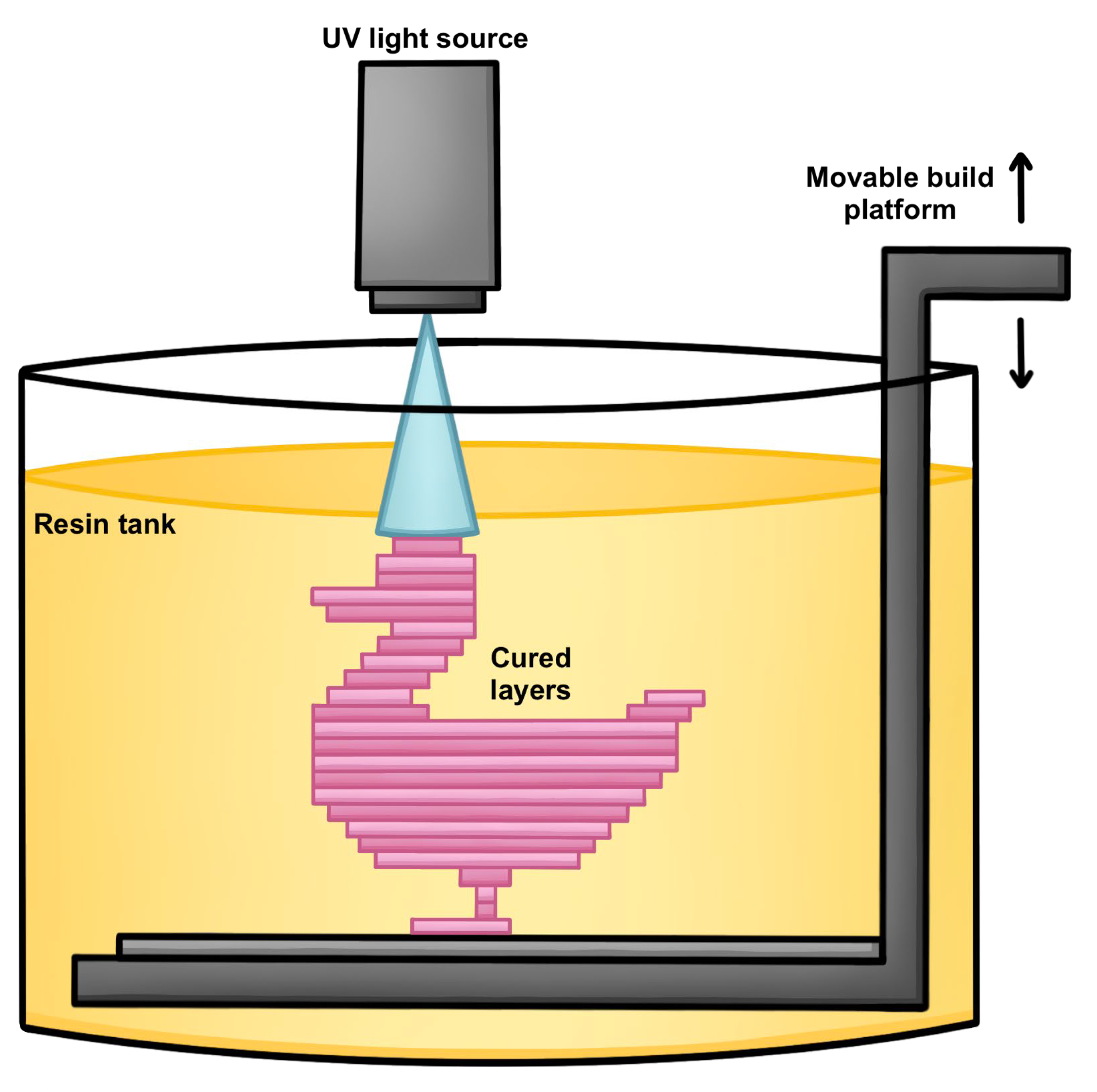 - Huang, J.; Qin, Q.; Wang, J. A review of stereolithography: Processes and systems. Processes 2020, 8, 1138. [Google Scholar] [CrossRef]