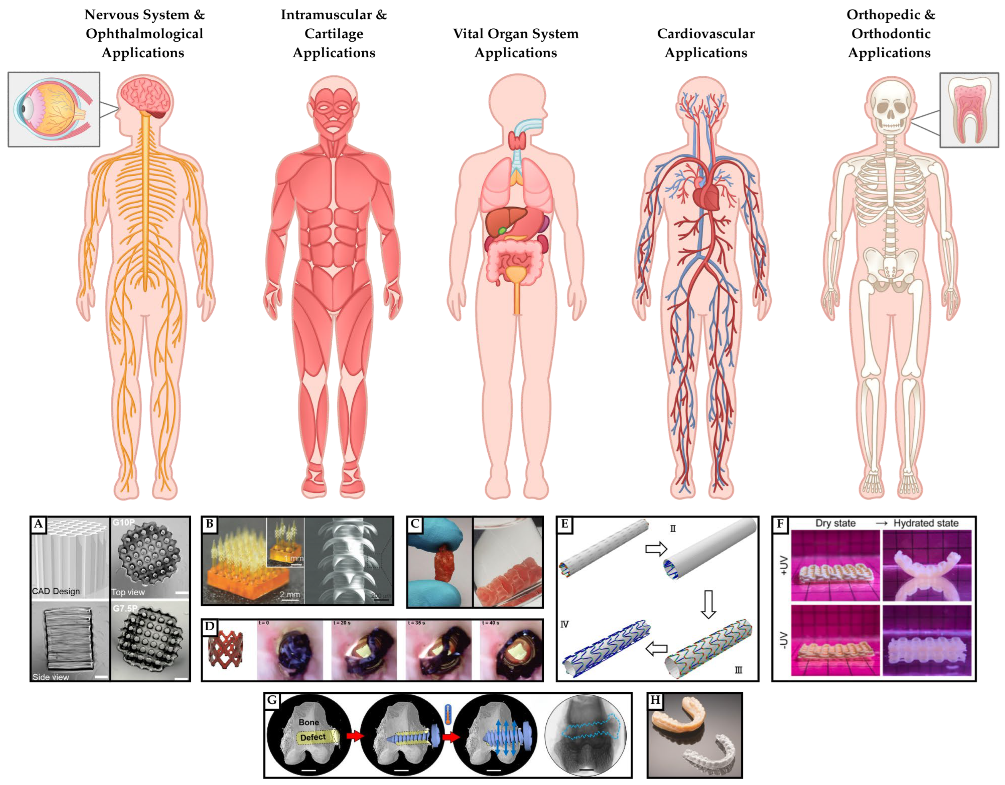 - Mandal, A.; Chatterjee, K. 4D printing for biomedical applications. J. Mater. Chem. B 2024, 12, 2985–3005. [Google Scholar] [CrossRef]