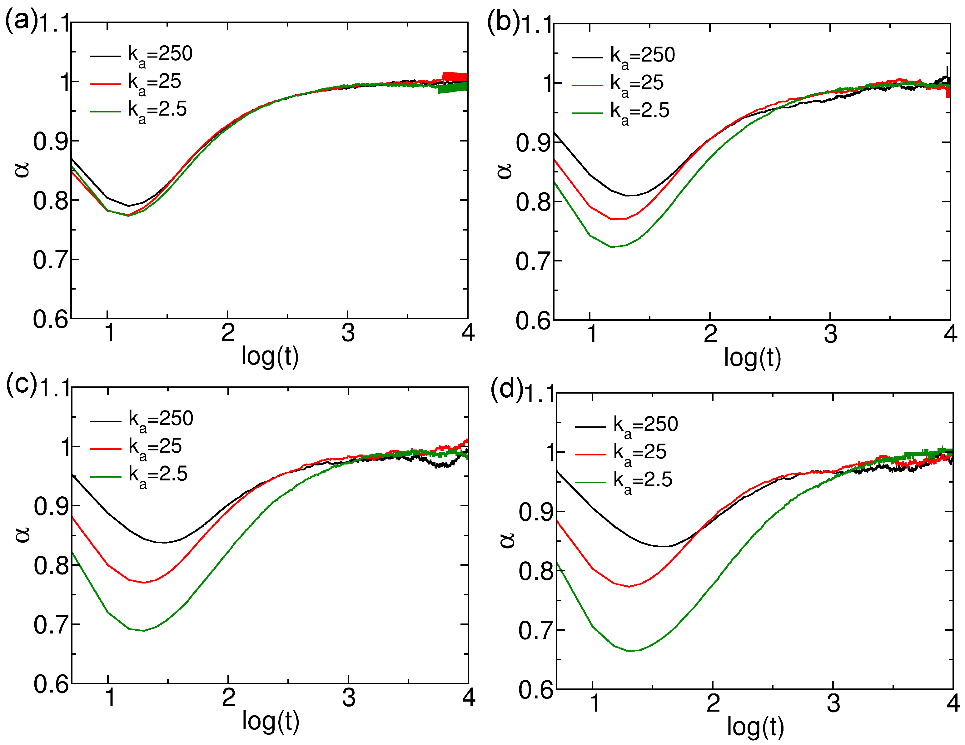 indicates normal diffusion. The anomalous diffusion exponents