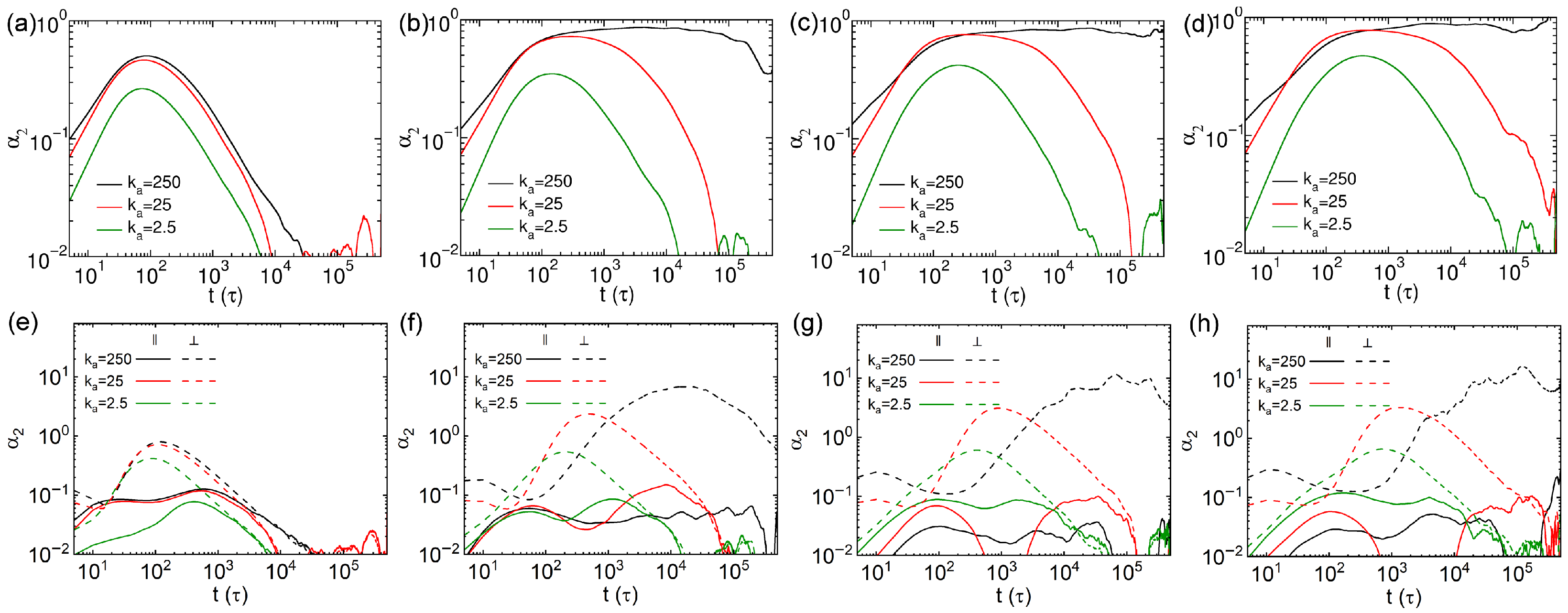 Figure 4a–d. The parallel MSDs slightly exceed the perpendicular ones for nanorods with