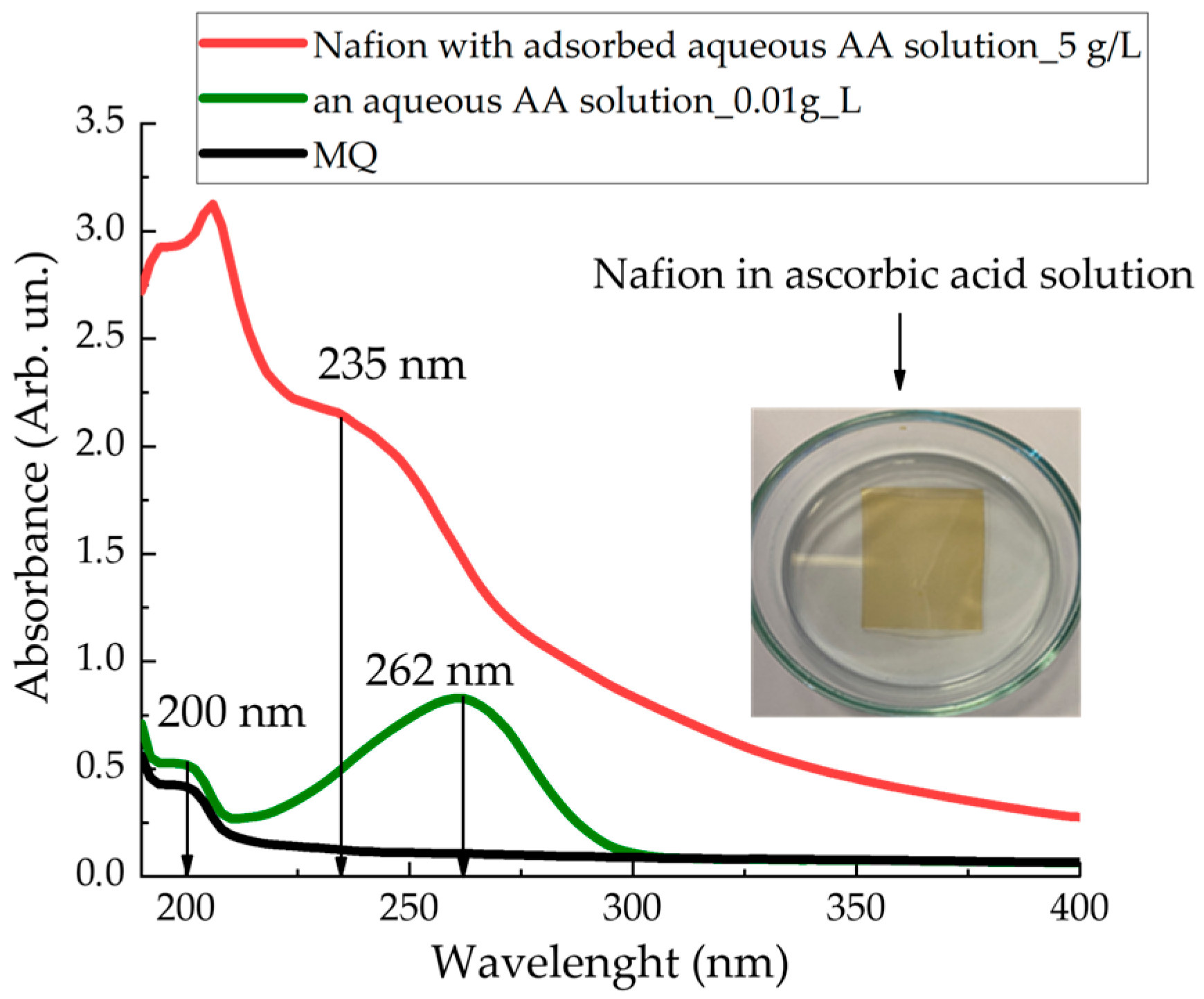 Figure 14), and for the Nafion membrane after aqueous AA solution adsorption, the shift is toward the UV region (