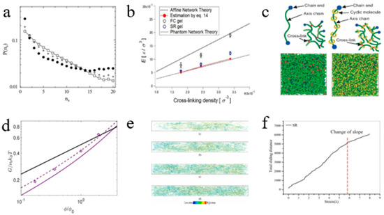 - Yasuda, Y.; Masumoto, T.; Mayumi, K.; Toda, M.; Yokoyama, H.; Morita, H.; Ito, K. Molecular dynamics simulation and theoretical model of elasticity in slide-ring gels. ACS Macro Lett. 2020, 9, 1280–1285. [Google Scholar] [CrossRef]