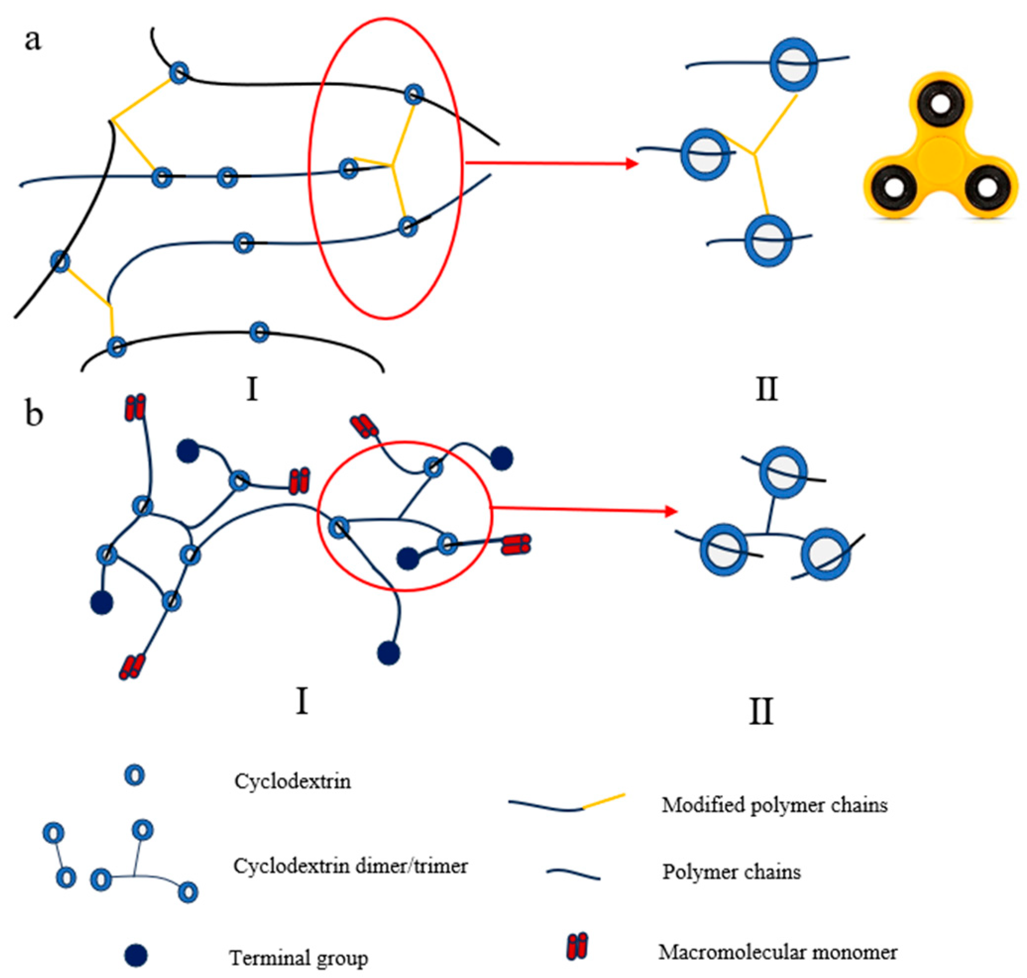 2.1. Sliding Cross-Linking Point Configurations Based on Cyclodextrin and Their Preparation