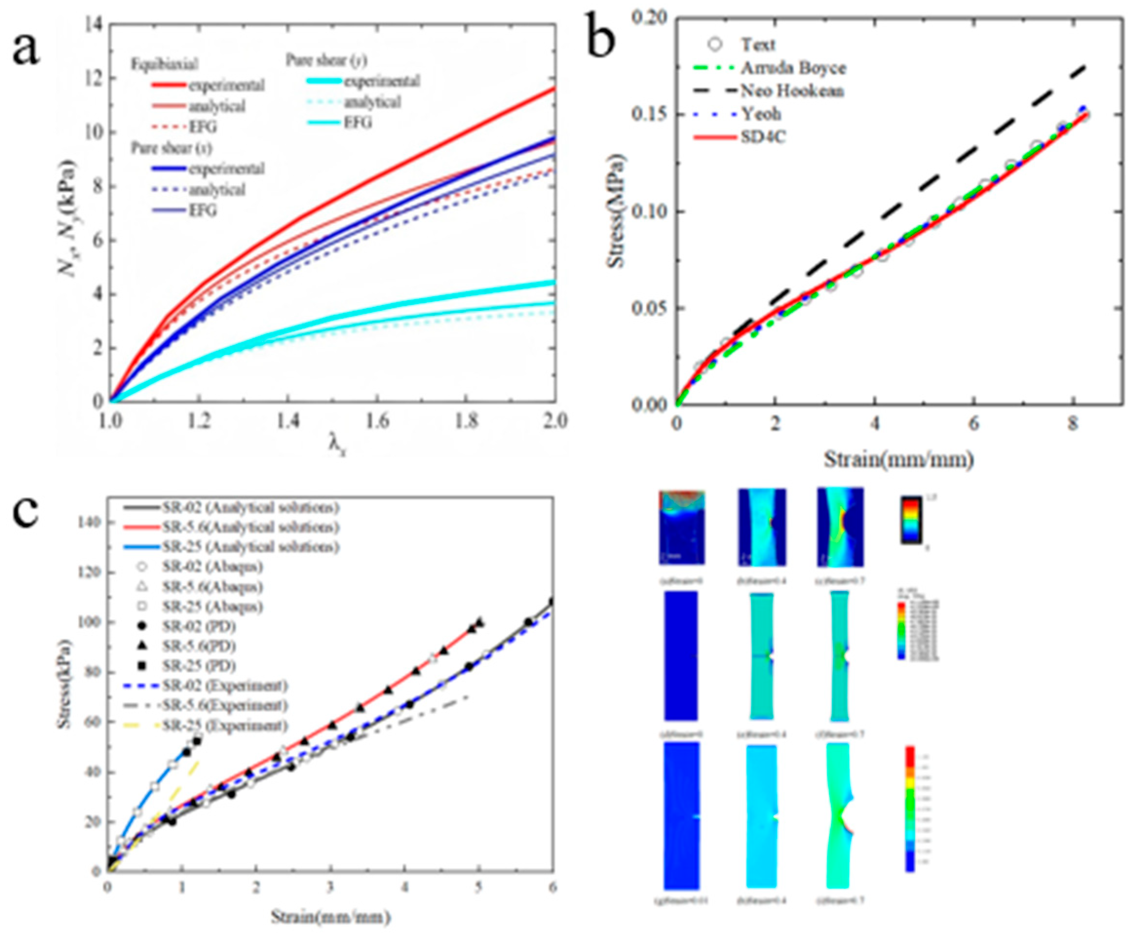 - Li, D.M.; Liu, J.H.; Xie, J.X. Element-Free Modelling of Topological Gels with Peculiar Multiaxial Large Deformation Behavior. Acta Mech. Solida Sin. 2022, 35, 880–890. [Google Scholar] [CrossRef]
