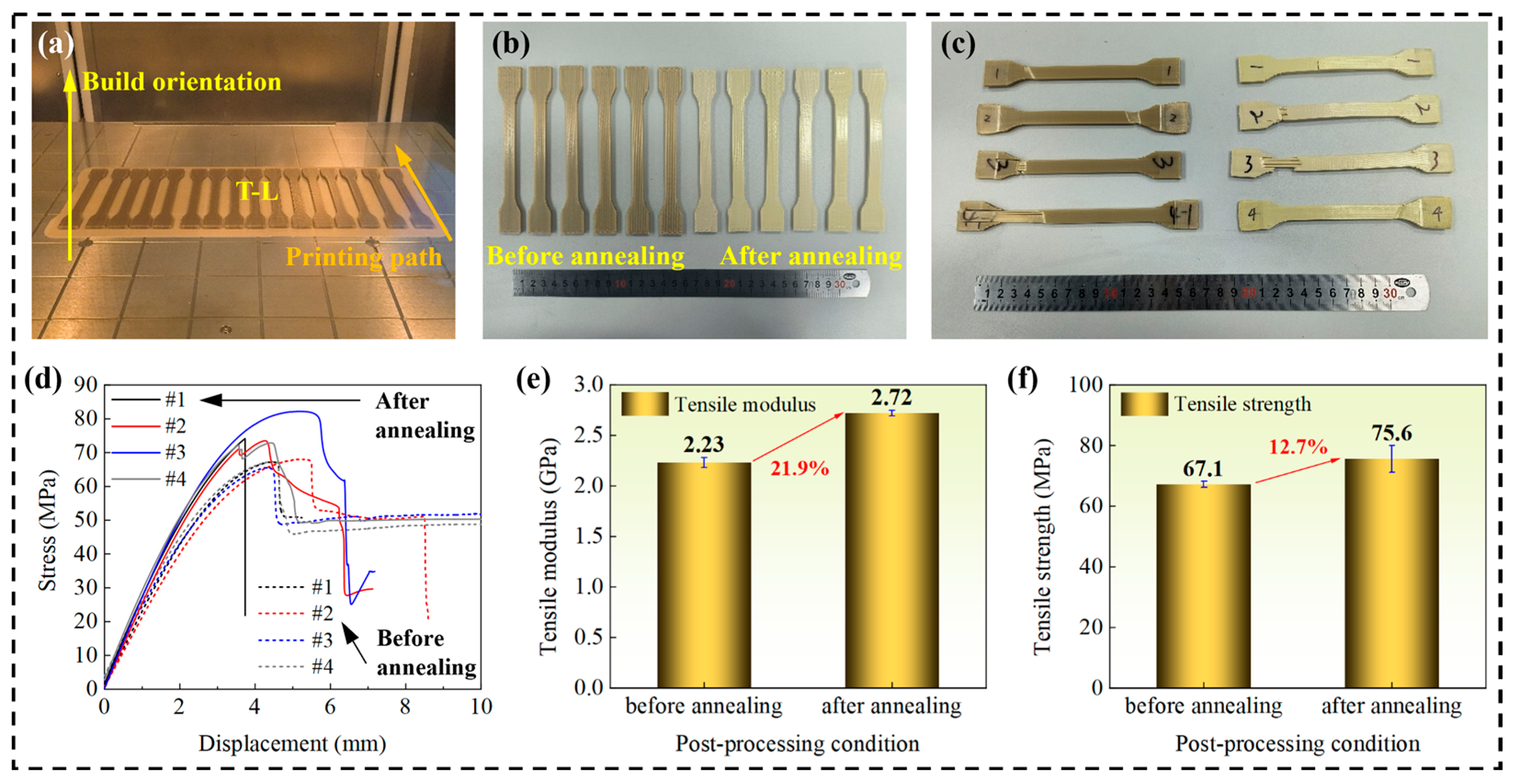 - Adamson, M.; Eslami, B. Post-processing peek 3d-printed parts: Experimental investigation of annealing on microscale and macroscale properties. Polymers 2025, 17, 744. [Google Scholar] [CrossRef]
