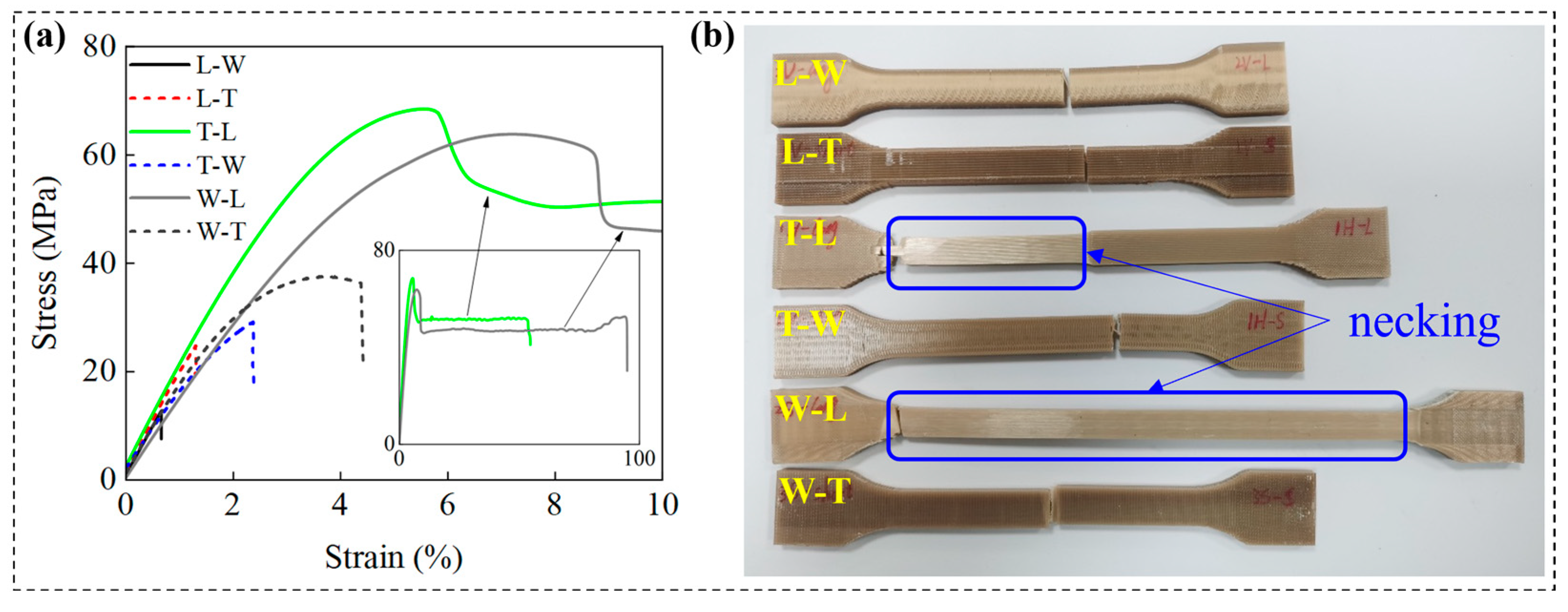 3.1.1. Analysis of the Influence of Printing Path on Tensile Properties