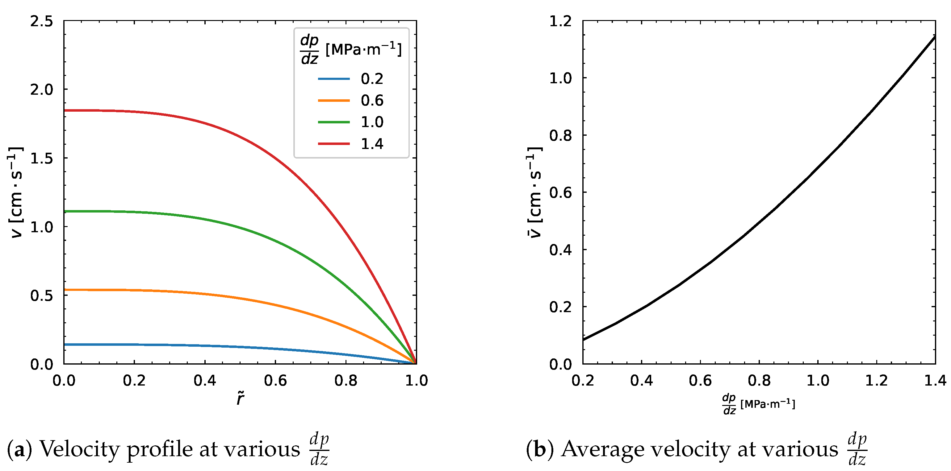 Note that, in our formulation, the quantity  d p d z  appears only as a constant driving term, and the equation of (23) is nondimensional relative to the other variables because the combination  d p d z R 2  naturally scales with the characteristic shear stress  η w γ ˙ w . Since we have  s = 1 η ˜ = 1 , and  r ˜ = 1  at the wall, the first equation in (23) becomes
