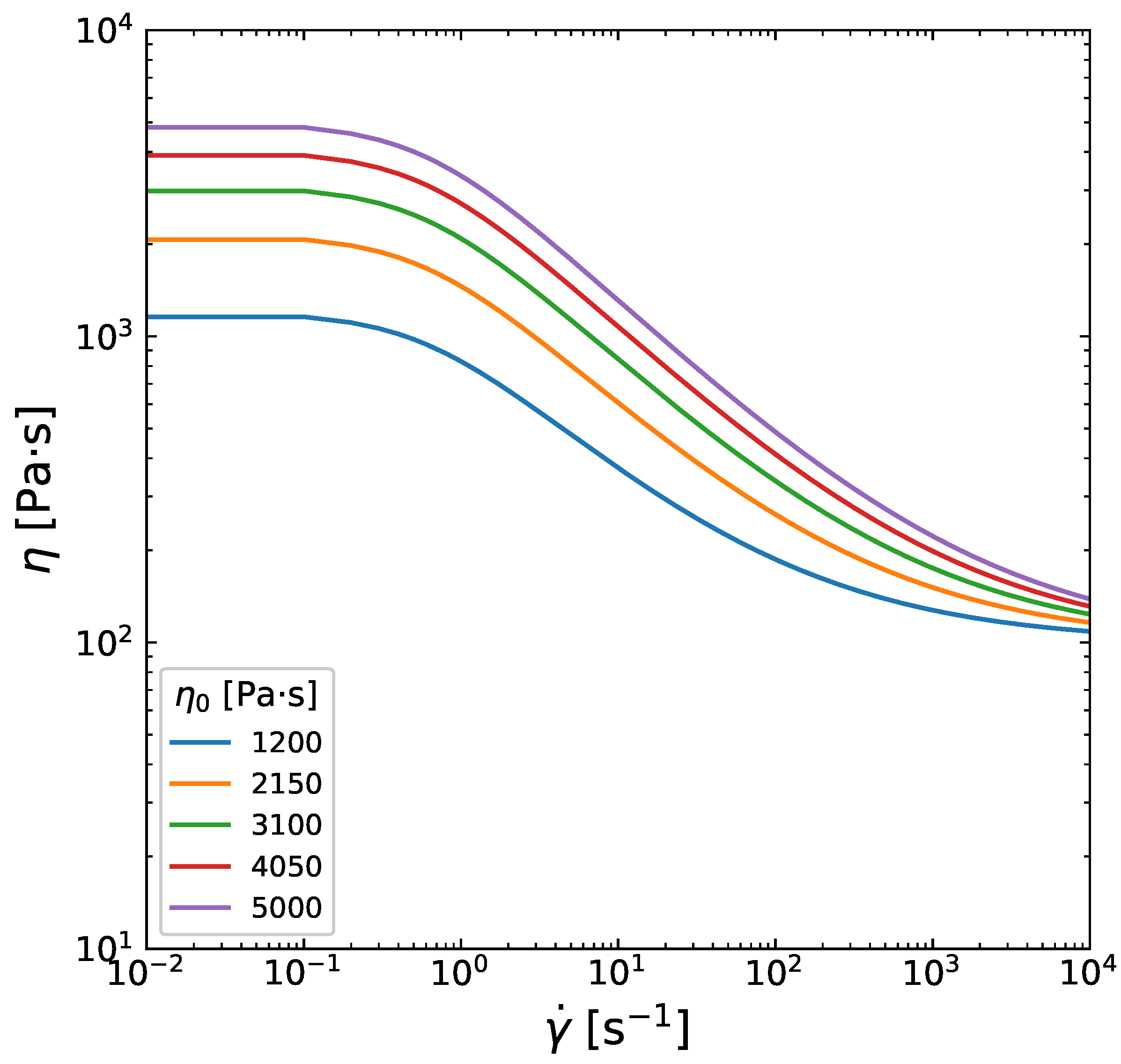 Figure A4. Influence of change in  η 0  on the viscosity.