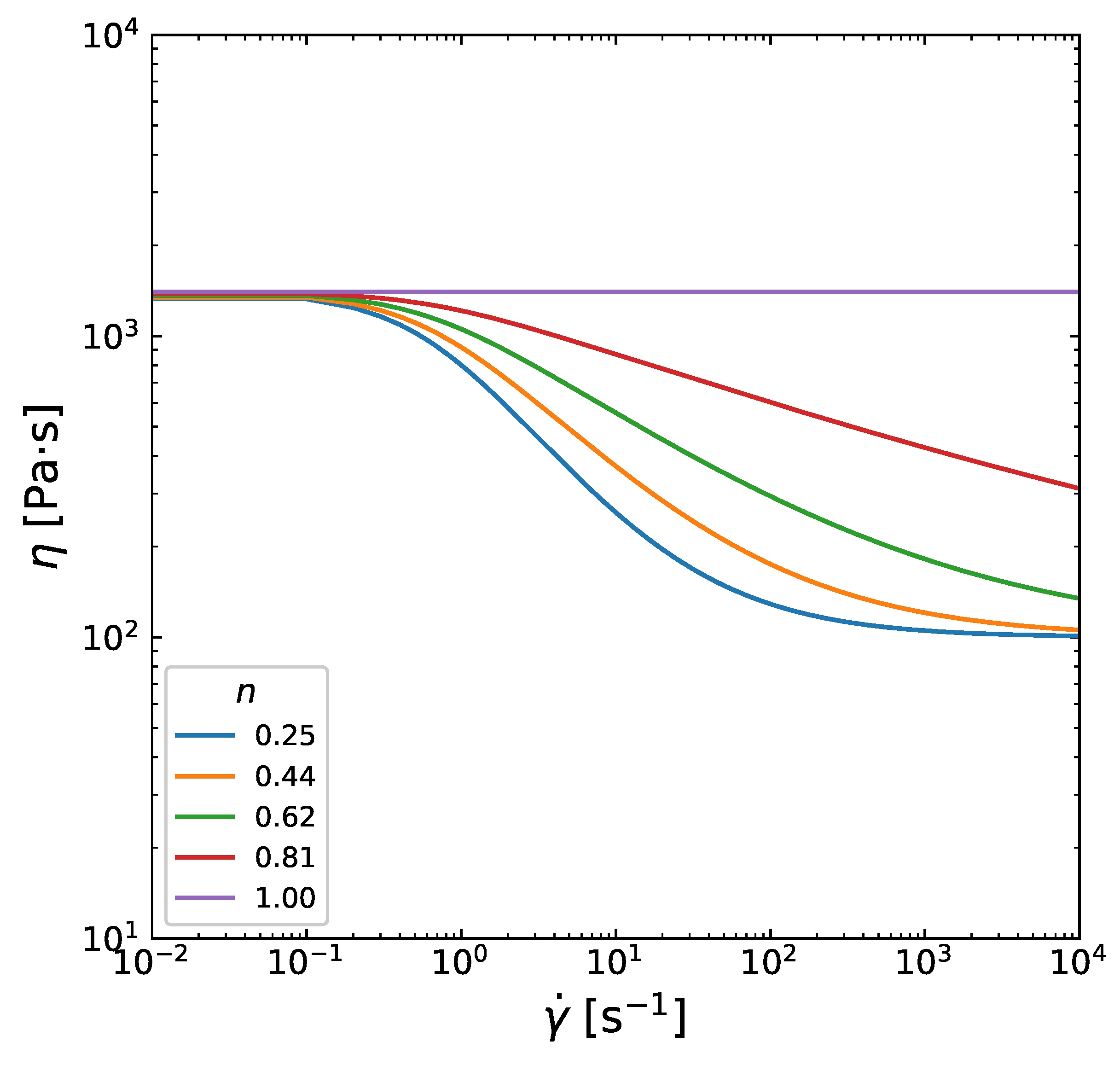 η s ( γ ˙ ) = η + ( η 0 η ) 1 + ( λ γ ˙ ) a n 1 a viscosity of media