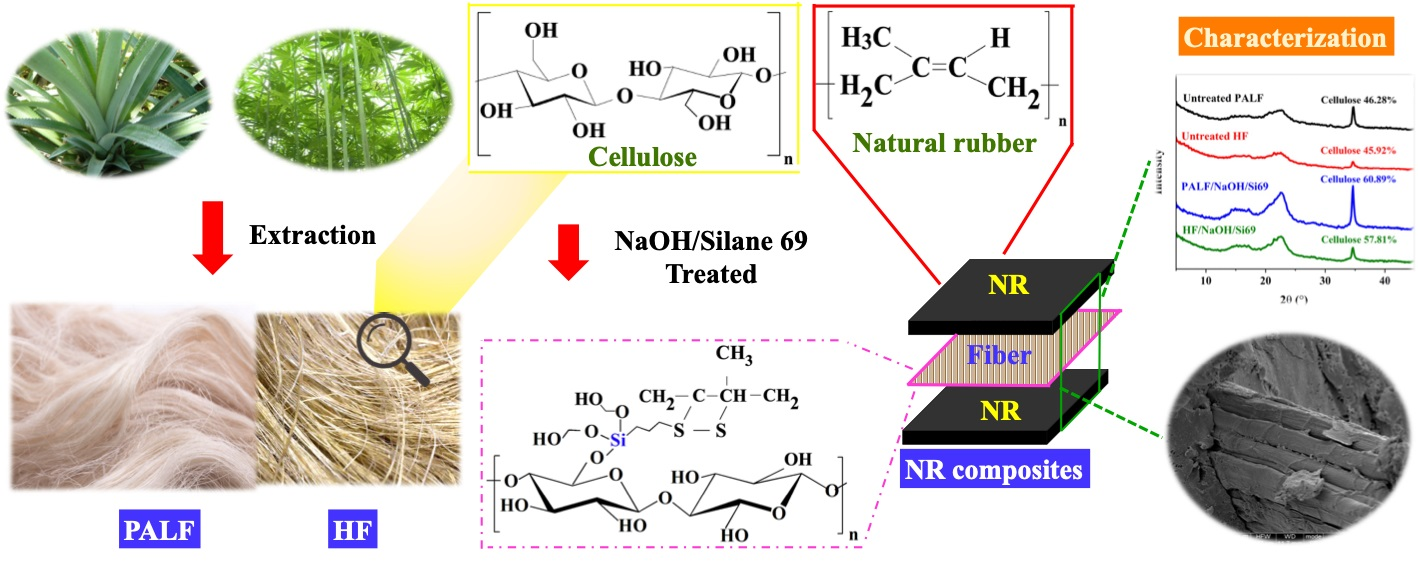 - Güner, C.; Manzak, A. Investigating the influence of alkali treated hemp fiber on the mechanical properties of diverse rubber composites. J. Rubber Res. 2025, 28, 159–177. [Google Scholar] [CrossRef]