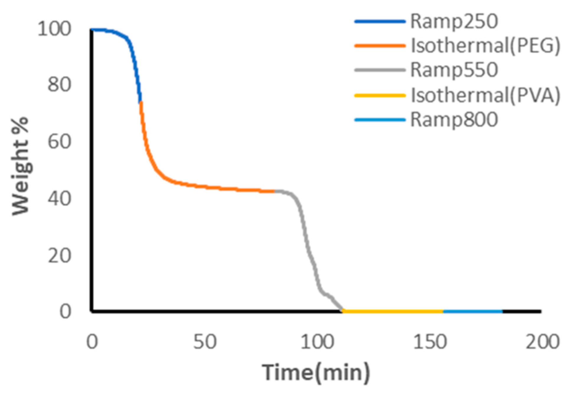 3.3. PVA/PEG Hydrogel Component Analysis Through the Use of TGA