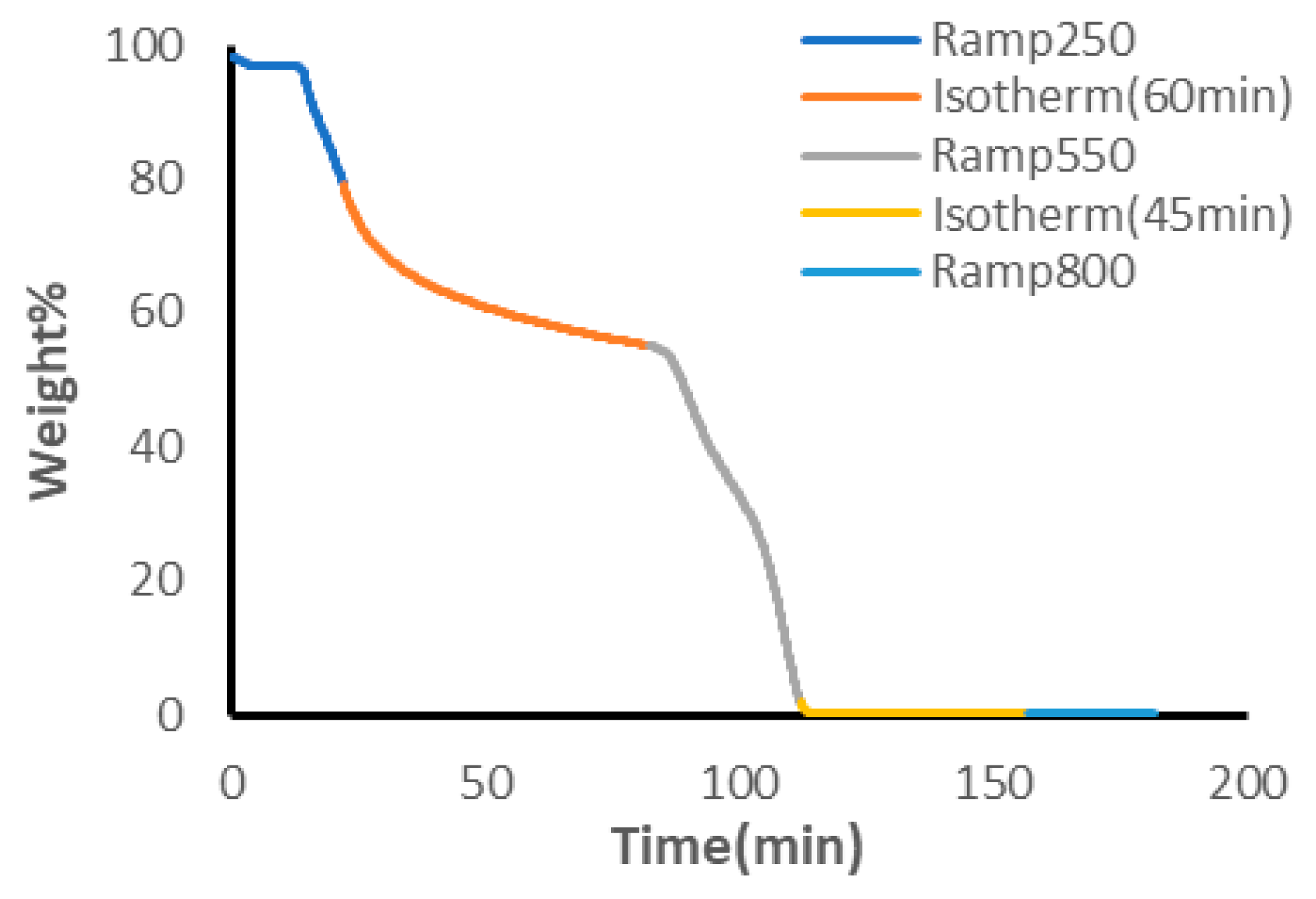 - Flynn, J.H.; Wall, L.A. General Treatment of the Thermogravimetry of Polymers. J. Res. Natl. Bur. Stand. Sect. A Phys. Chem. 1966, 70A, 487–523. [Google Scholar] [CrossRef]