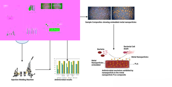 - Ahmed, W.; Al-Marzouqi, A.H.; Nazir, M.H.; Rizvi, T.A.; Zaneldin, E.; Khan, M. Comparative experimental investigation of biodegradable antimicrobial polymer-based Composite produced by 3D Printing Technology enriched with metallic particles. Int. J. Mol. Sci. 2022, 23, 11235. [Google Scholar] [CrossRef]