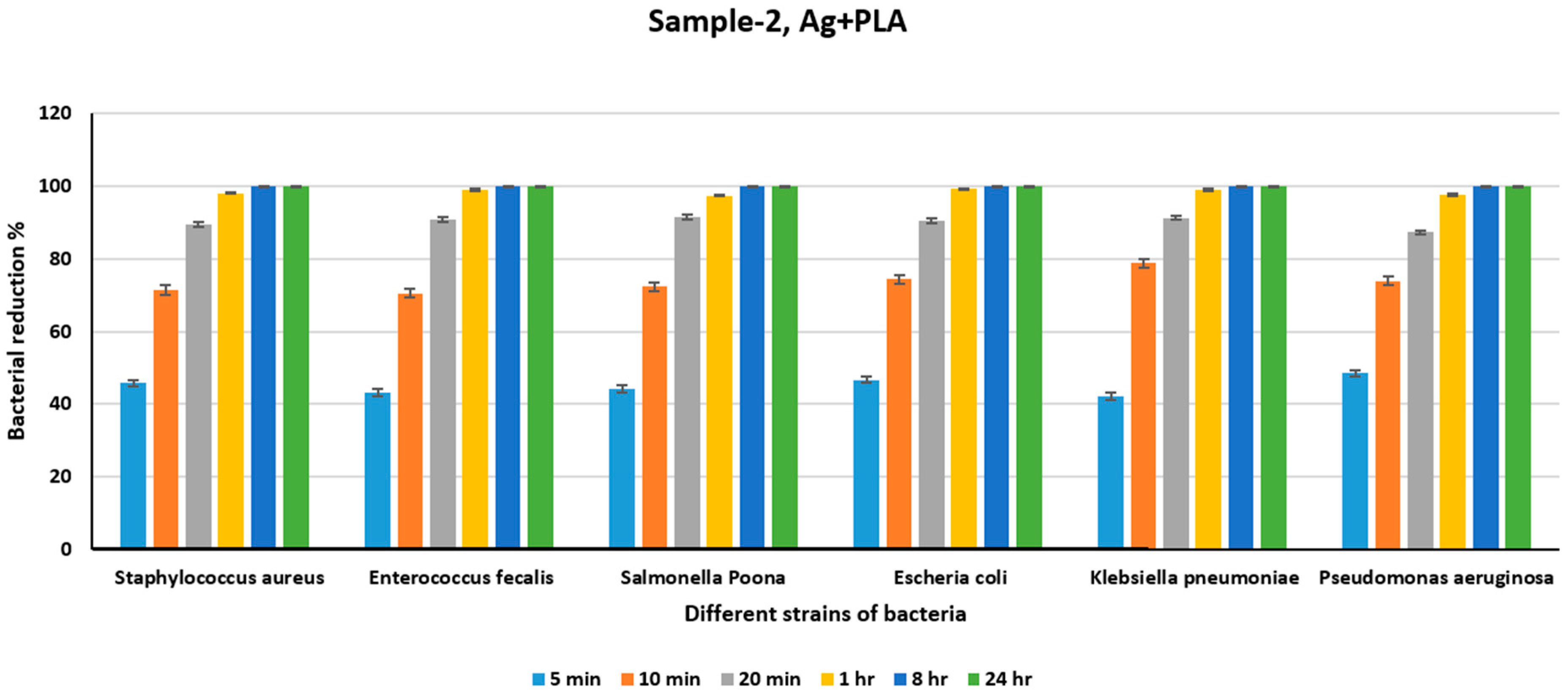 | Ag+PLA | Staphylococcus aureus | 4500 | 2600 | 950 | 290 | 43 | 1 | 1 |