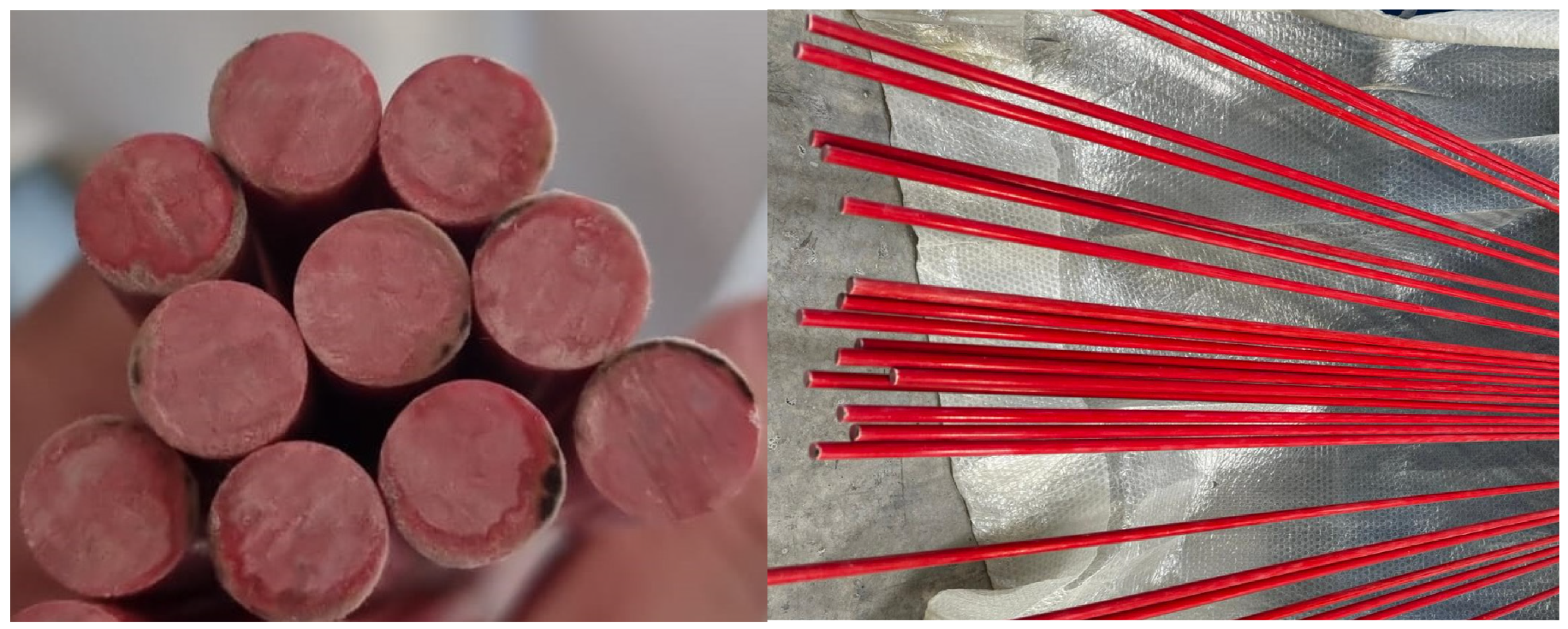 In this study, GFRP bars were employed as longitudinal reinforcement, selected for their favorable balance between mechanical performance and cost efficiency. The flexural behavior of GFRP-reinforced concrete beams was evaluated through a comprehensive experimental program involving three-point bending tests on nine specimens. The beams were cast using concrete mixtures with varying compressive strengths, classified as high strength (C45, C50, C65), thereby enabling assessment of the influence of concrete strength on global flexural response.
