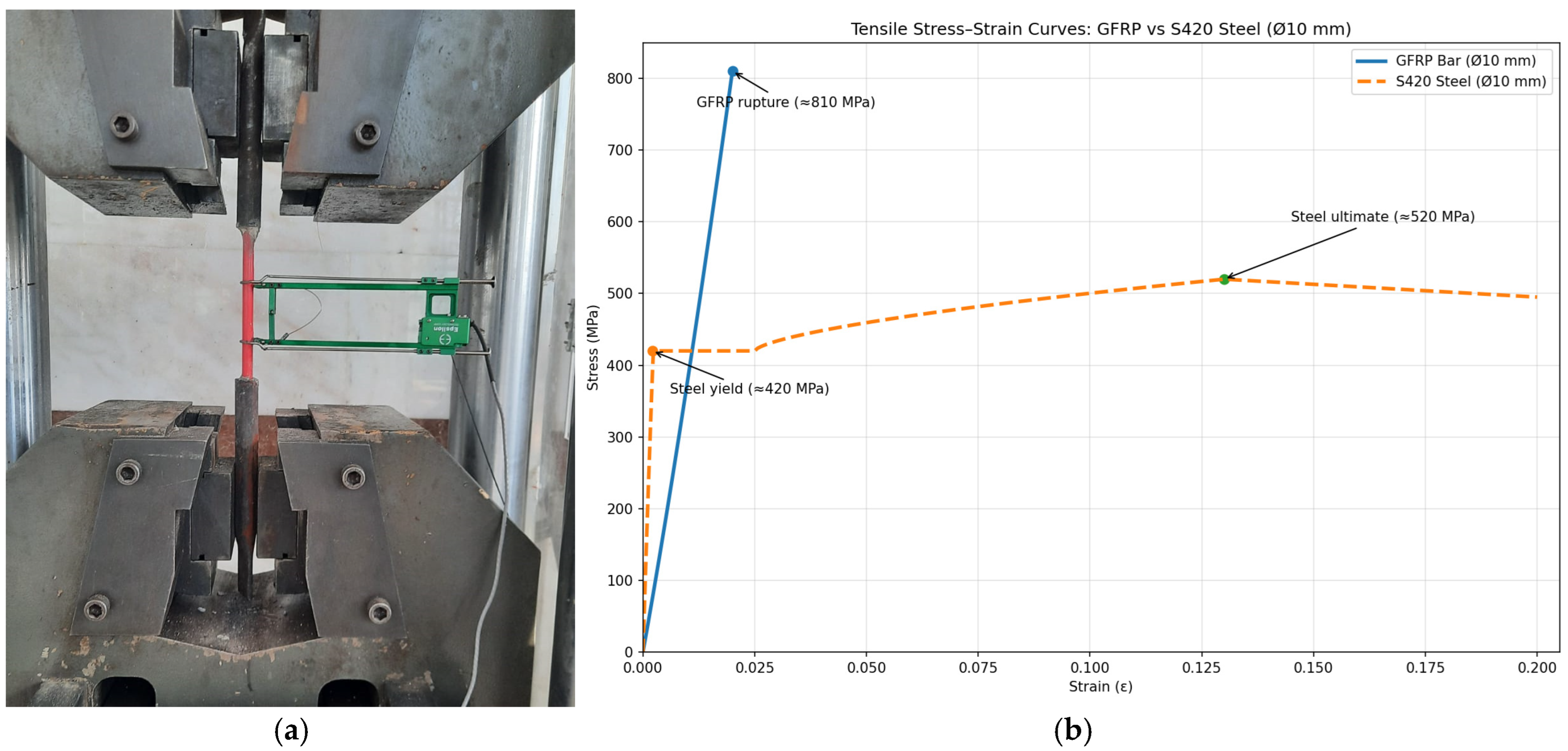 Glass fiber–reinforced polymer (GFRP) bars have recently become a focal point of research as a potential substitute for traditional steel reinforcement in concrete members. This growing interest is largely driven by the inherent drawbacks of steel reinforcement, including its high density, pronounced susceptibility to corrosion in moisture- and chloride-rich environments, and the resulting long-term deterioration in mechanical capacity. In contrast, GFRP reinforcement offers several advantageous characteristics, most notably corrosion immunity, low self-weight, and high tensile strength—making it a promising alternative for applications where durability and reduced maintenance demands are critical.