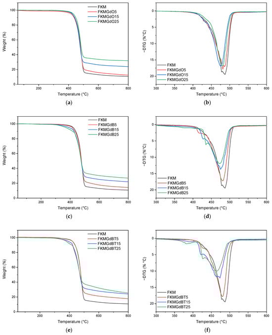 3.3. Thermogravimetric Analysis of Fillers and FKM Gadolinium Composites