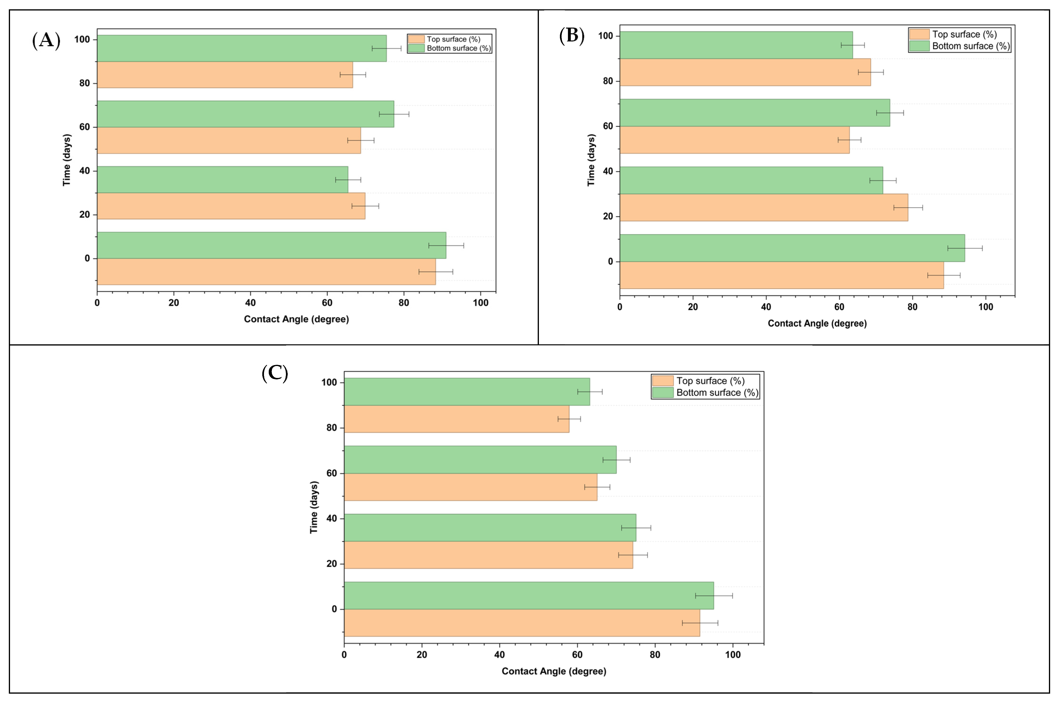 3.2.1. Surface Hydrophobicity: Contact Angle Measurements