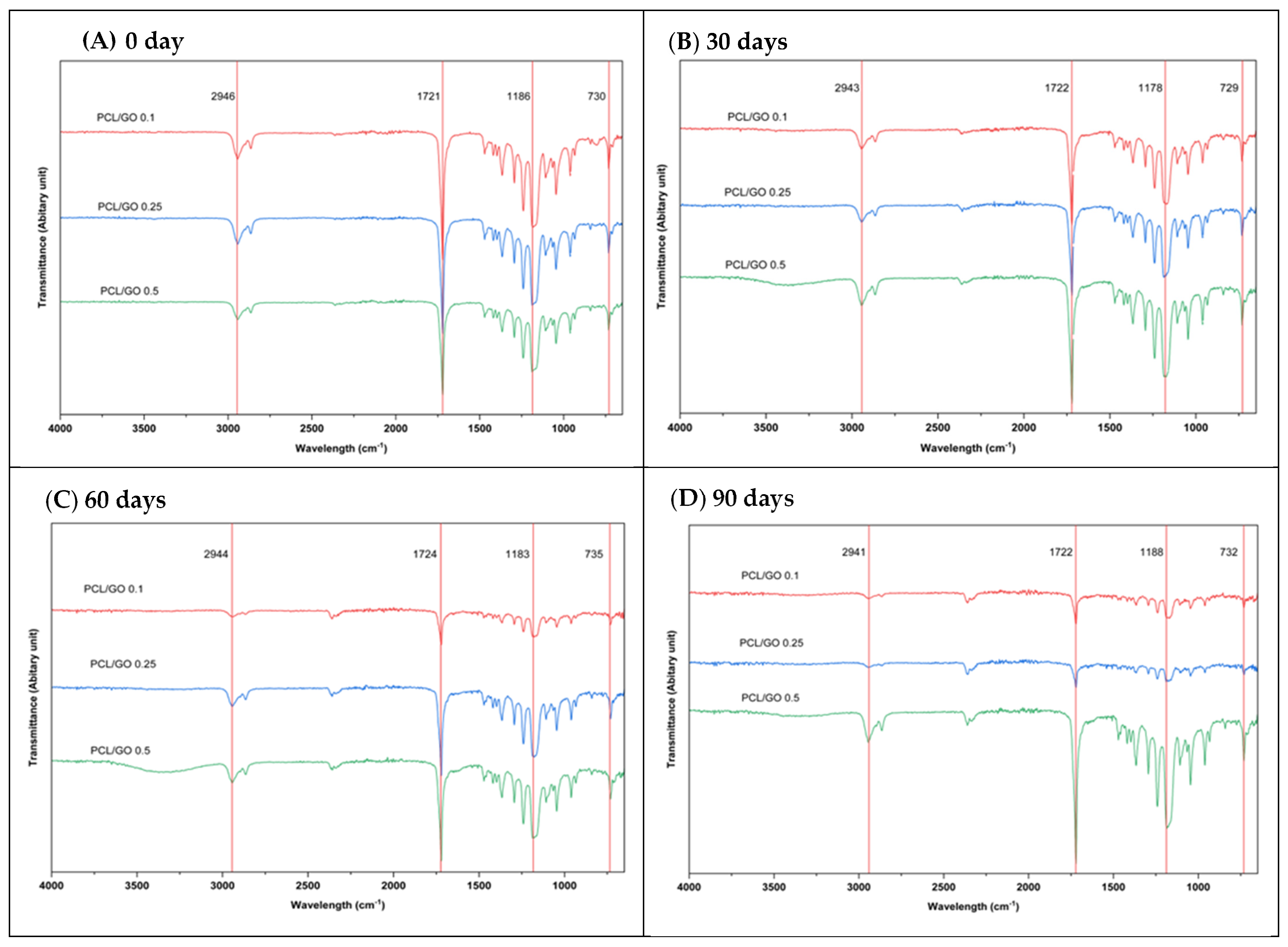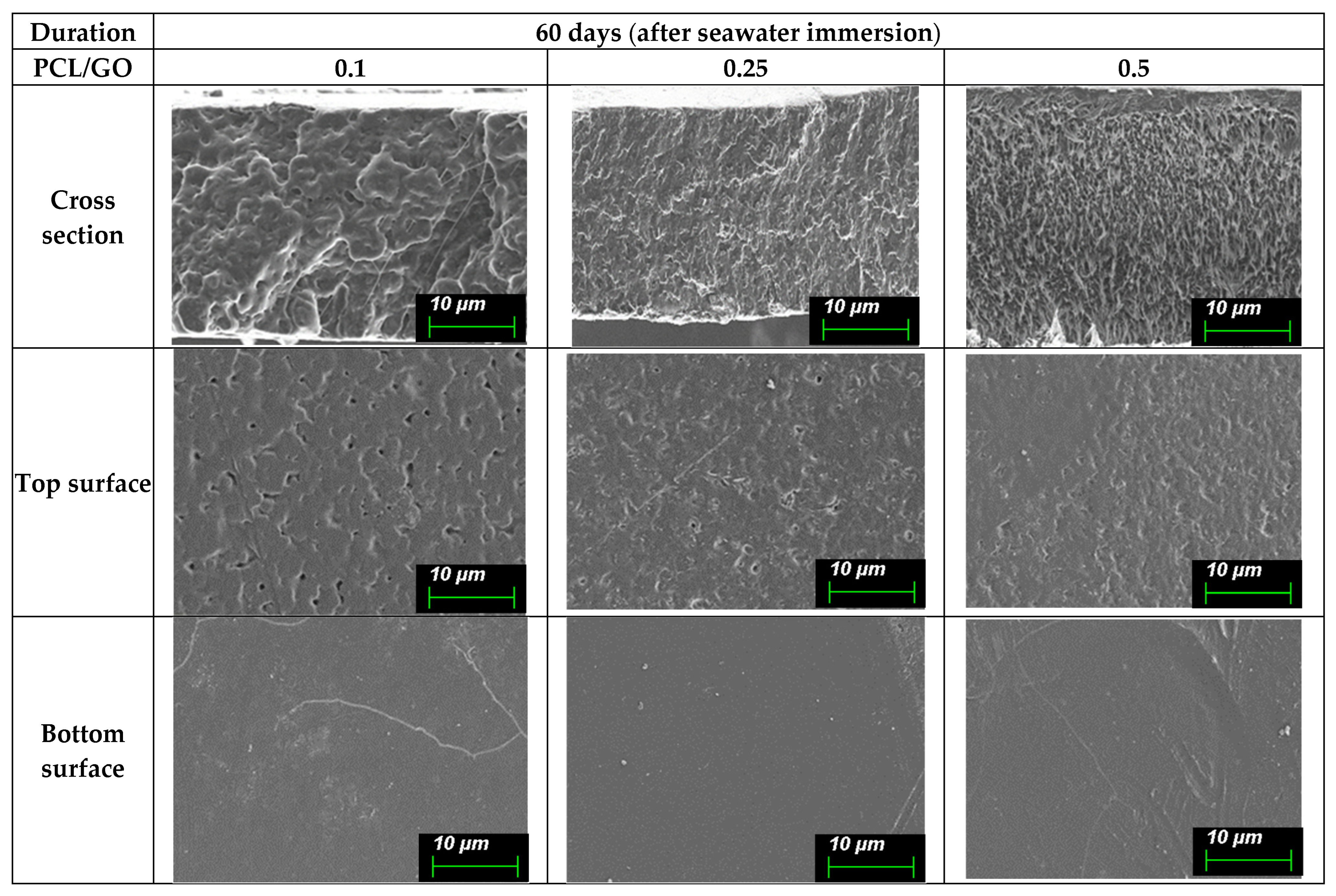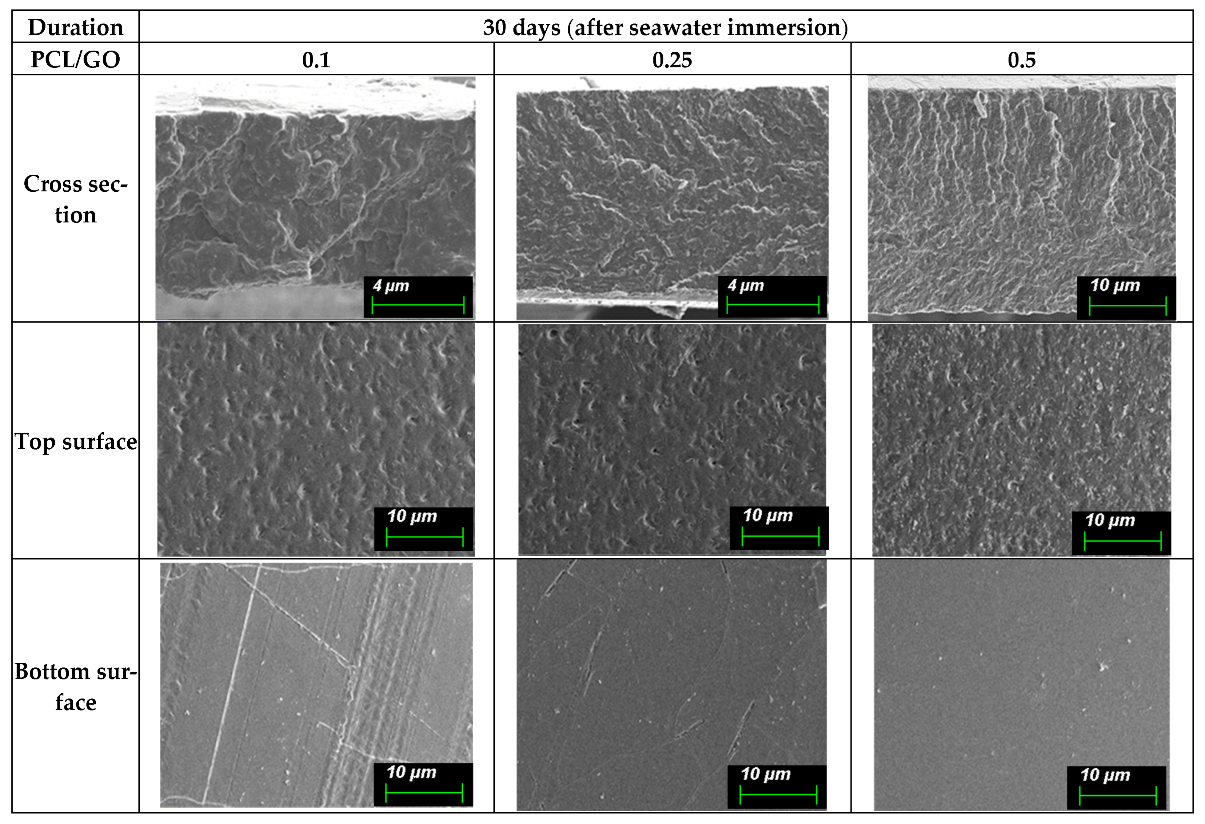 | PCL/GO 0.25 | 0 | 331 ± 18 | 5.7 ± 0.6 |