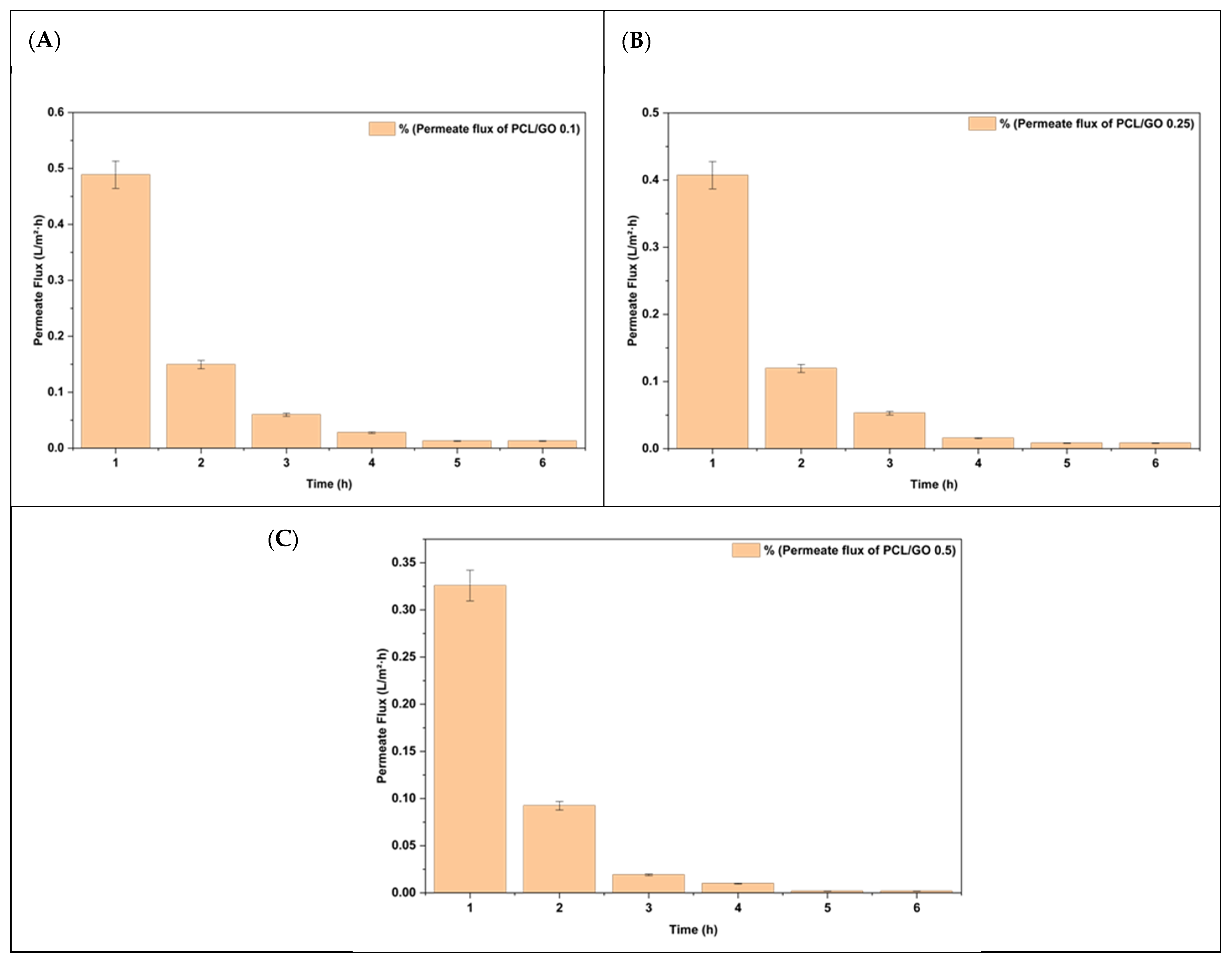 | PCL/GO 0.5 | 0 | 309 ± 16 | 6.4 ± 0.6 |