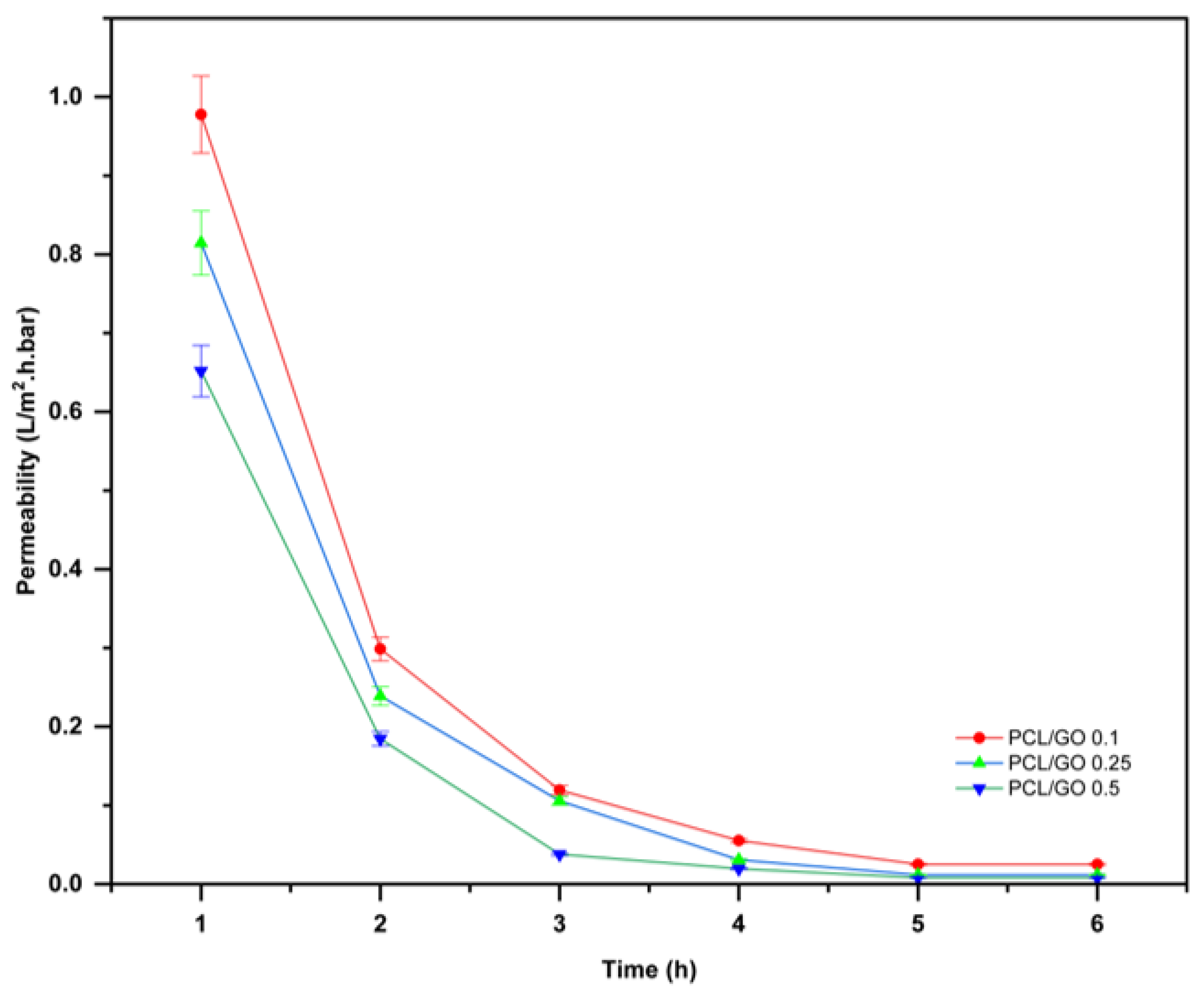 - Sánchez-González, S.; Diban, N.; Urtiaga, A. Hydrolytic Degradation and Mechanical Stability of Poly(ε-Caprolactone)/Reduced Graphene Oxide Membranes as Scaffolds for In Vitro Neural Tissue Regeneration. Membranes 2018, 8, 12. [Google Scholar] [CrossRef]