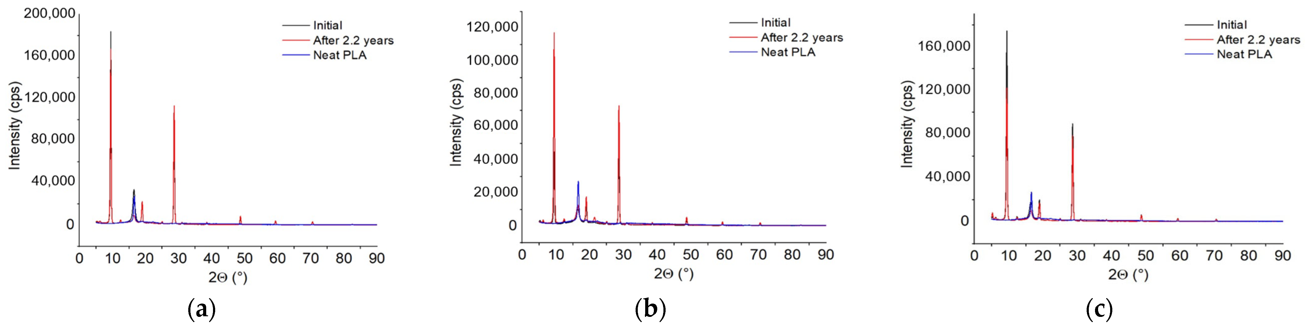- Simmons, H.; Tiwary, P.; Colwell, J.E.; Kontopoulou, M. Improvements in the crystallinity and mechanical properties of PLA by nucleation and annealing. Polym. Degrad. Stab. 2019, 166, 248–257. [Google Scholar] [CrossRef]