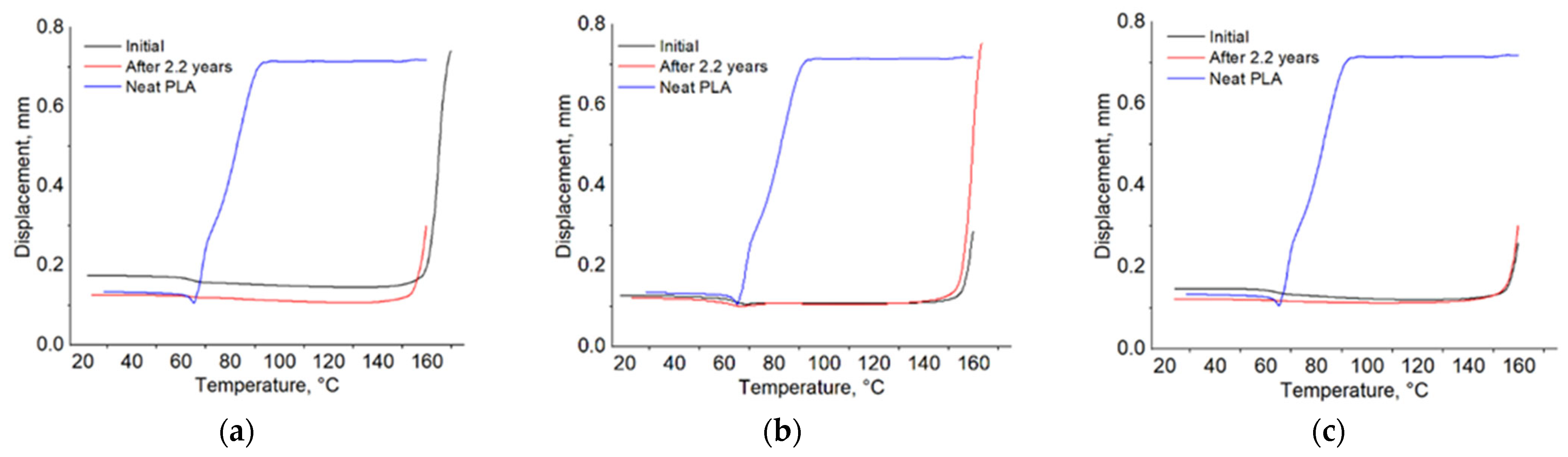 - Muller, P.; Imre, B.; Bere, J.; Moczo, J.; Pukanszky, B. Physical ageing and molecular mobility in PLA blends and composites. J. Therm. Anal. Calorim. 2015, 122, 1423–1433. [Google Scholar] [CrossRef]
