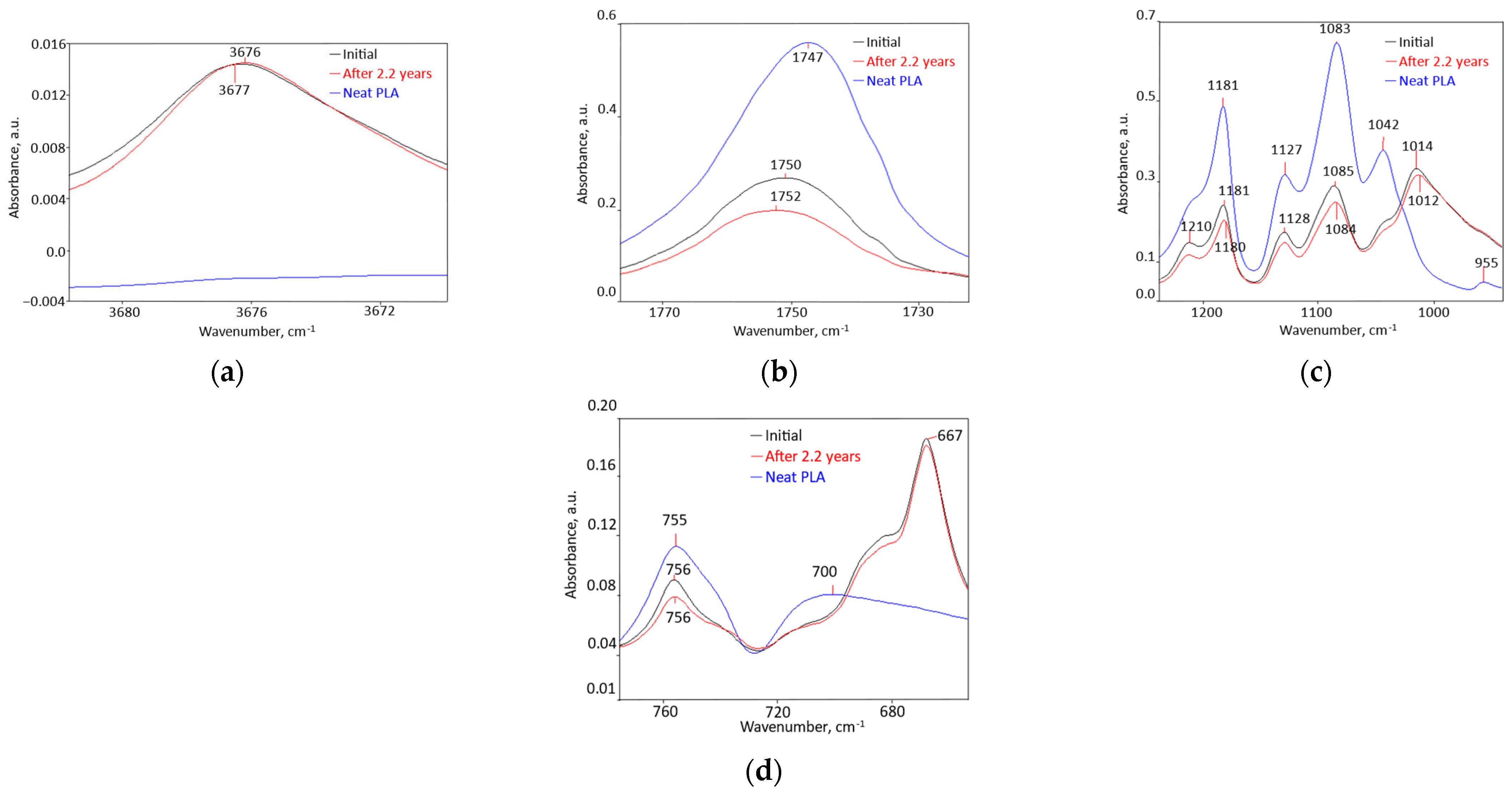 - Glaskova-Kuzmina, T.; Starkova, O.; Gaidukovs, S.; Platnieks, O.; Gaidukova, G. Durability of biodegradable polymer nanocomposites. Polymers 2021, 13, 3375. [Google Scholar] [CrossRef]