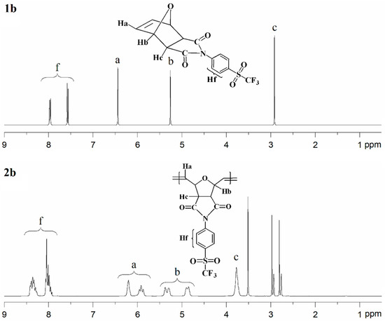 2.4.2. Synthesis of Poly(N-4-(Trifluoromethylsulfonyl)phenyl-7-oxanorbornene-5,6-dicarboximide) (2b)
