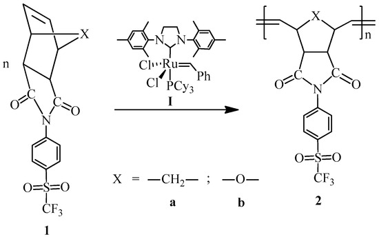 2.4.1. Synthesis of Poly(N-4-(Trifluoromethylsulfonyl)phenyl-norbornene-5,6-dicarboximide) (2a)