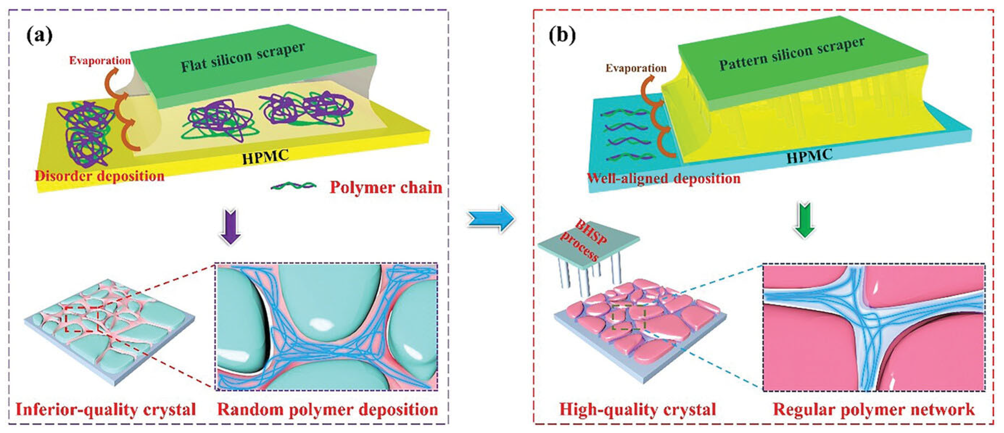 - Gong, C.; Li, F.; Hu, X.; Wang, C.; Shi, S.; Hu, T.; Zhang, N.; Liang, C.; Wu, D.; Chen, Y. Printing-Induced Alignment Network Design of Polymer Matrix for Stretchable Perovskite Solar Cells with over 20% Efficiency. Adv. Funct. Mater. 2023, 33, 2301043. [Google Scholar] [CrossRef]