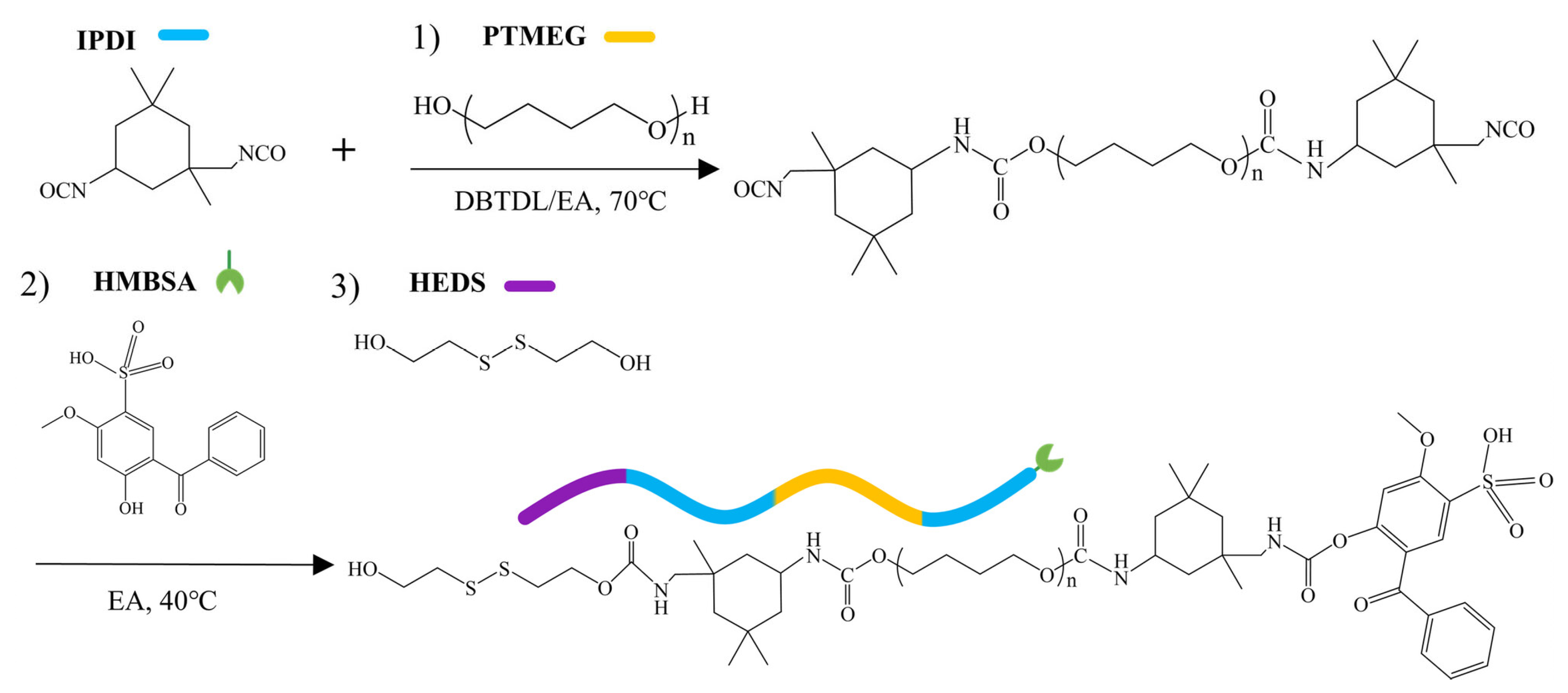 - Zhang, M.; He, B.; Yang, B.; Yang, Z.; Sui, H.; Chen, H.; Duan, J.; Tang, Q. In situ polymerization of disulfide bonds based polyurethane for wide-temperature self-healing perovskite solar cells. Chem. Eng. J. 2025, 520, 165948. [Google Scholar] [CrossRef]