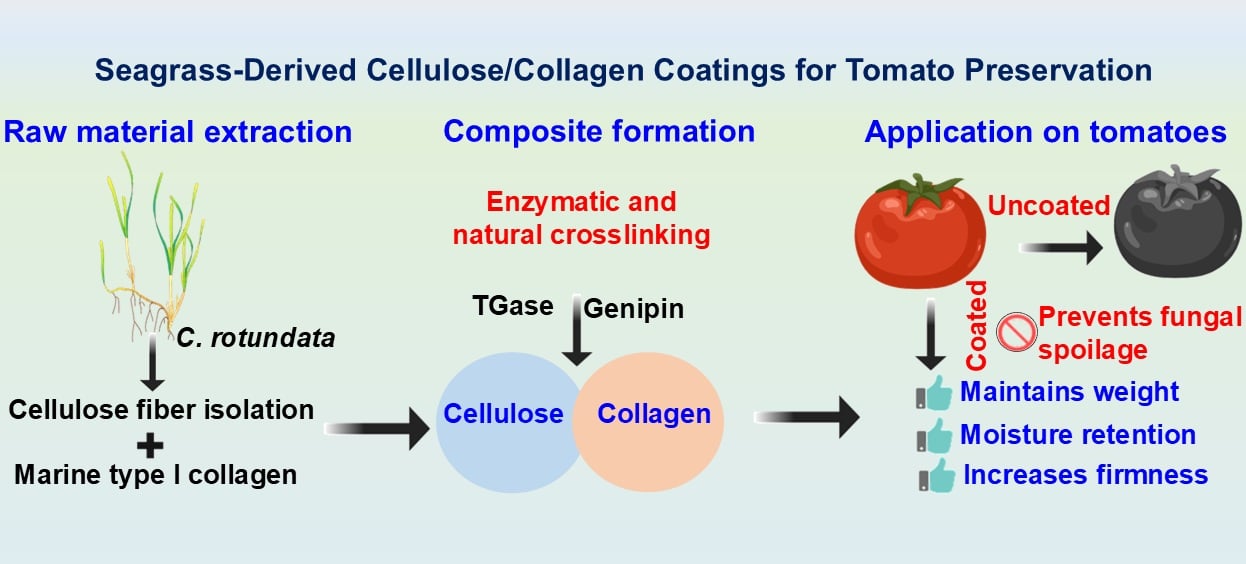 Seagrass-Derived Cellulose/Collagen Composite Coating for Enhanced Tomato Shelf Life and Postharvest Quality