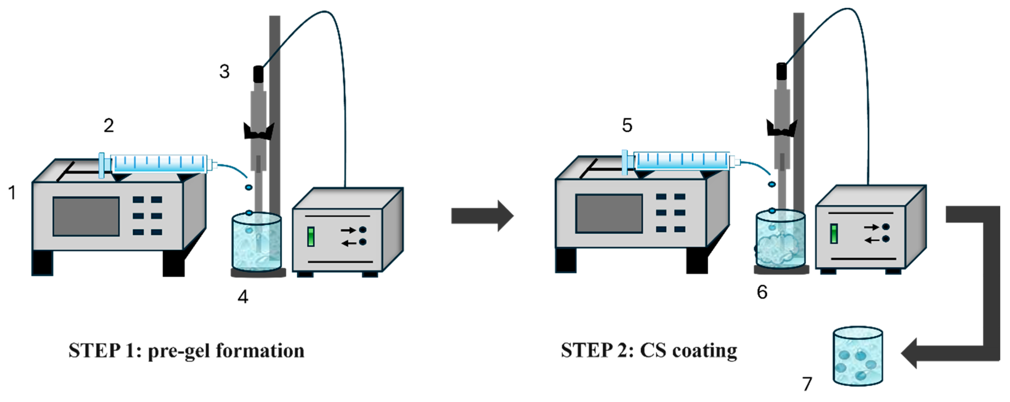 3.1. Synthesis Approach to Obtain ALG-CS NPs by a Modified Ionic Polyelectrolyte Pregelation Method