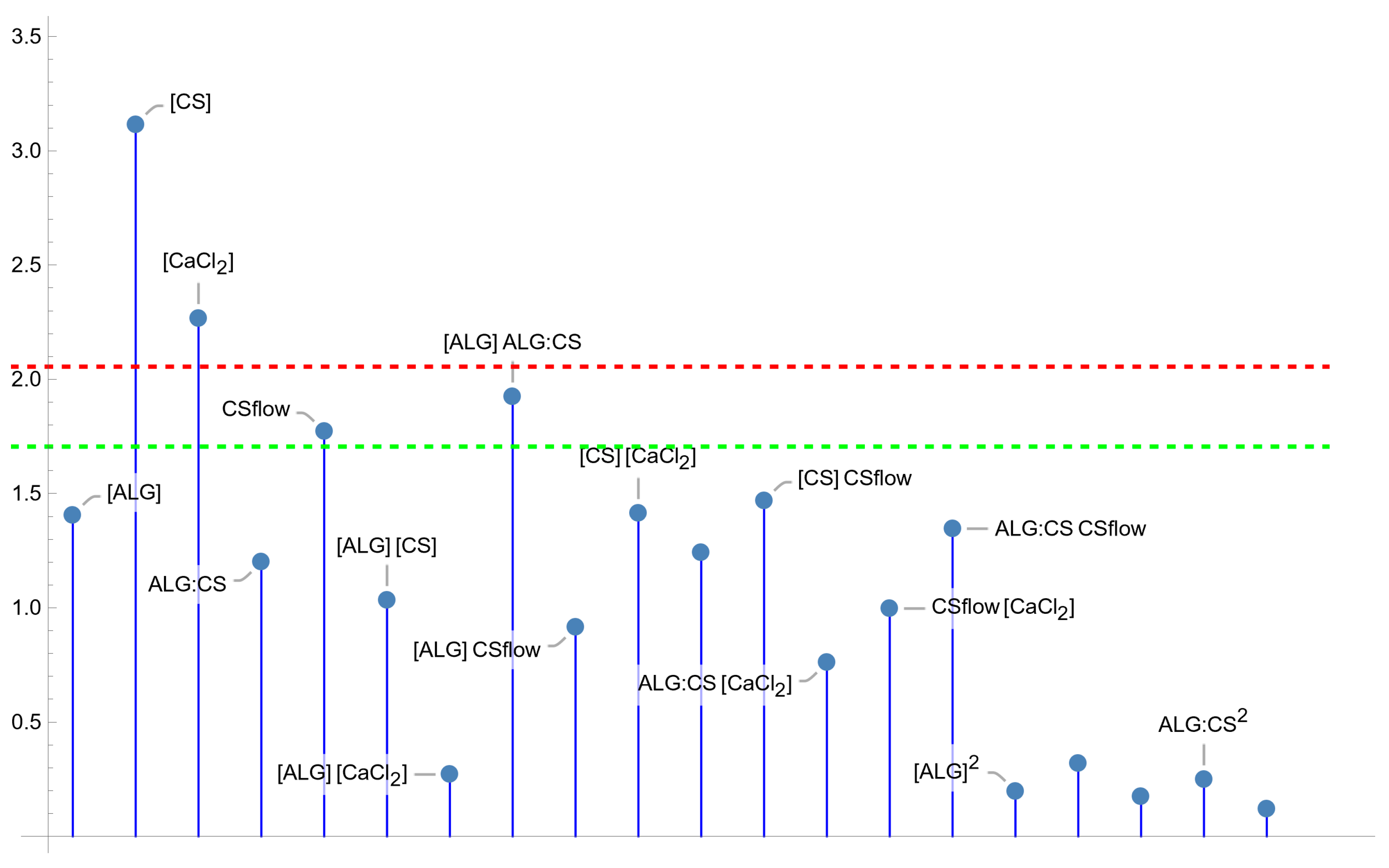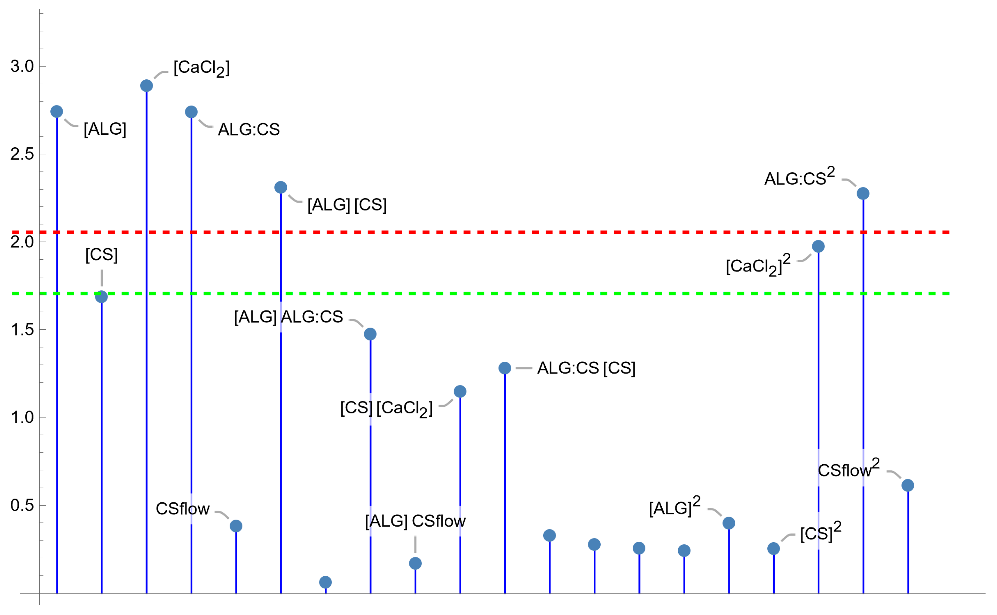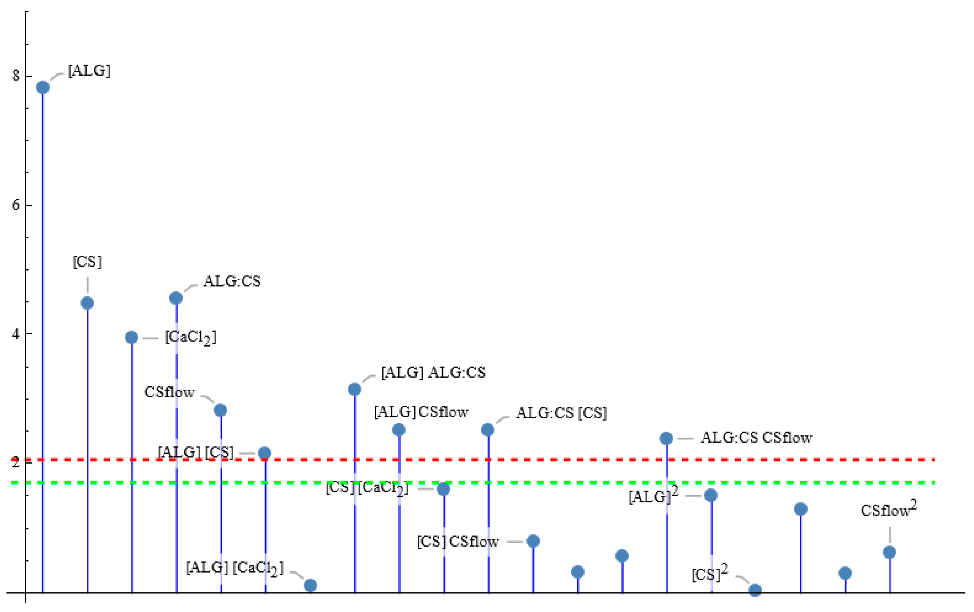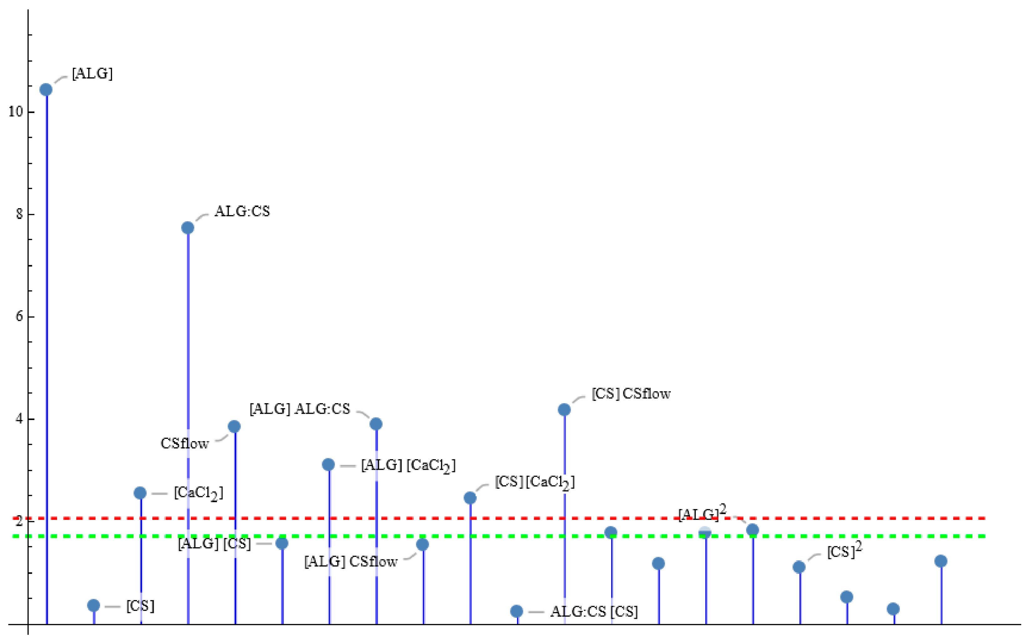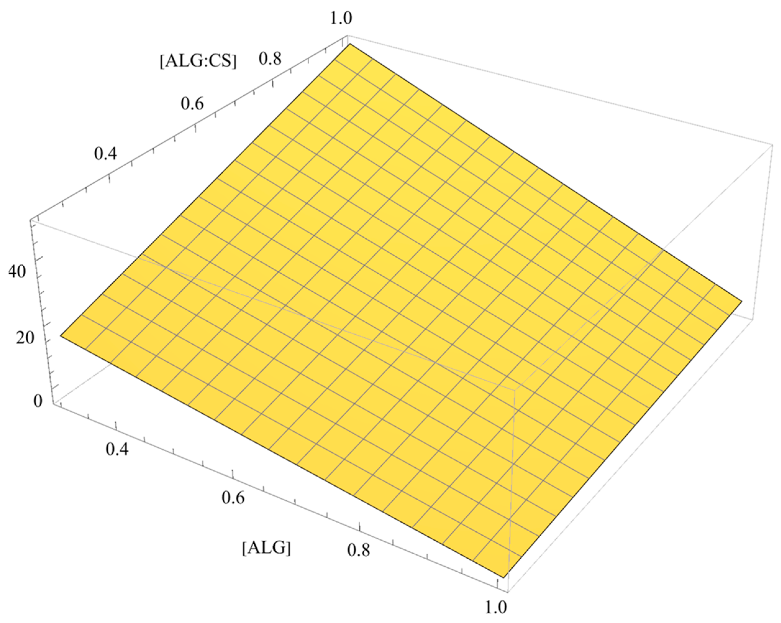 + 0.446 [ALG]+ 0.197 [CS] CSflow − 0.198 [CS] [CaCl2] + 0.252 [ALG] [CaCl2] − 0.367 [ALG] ALG:CS