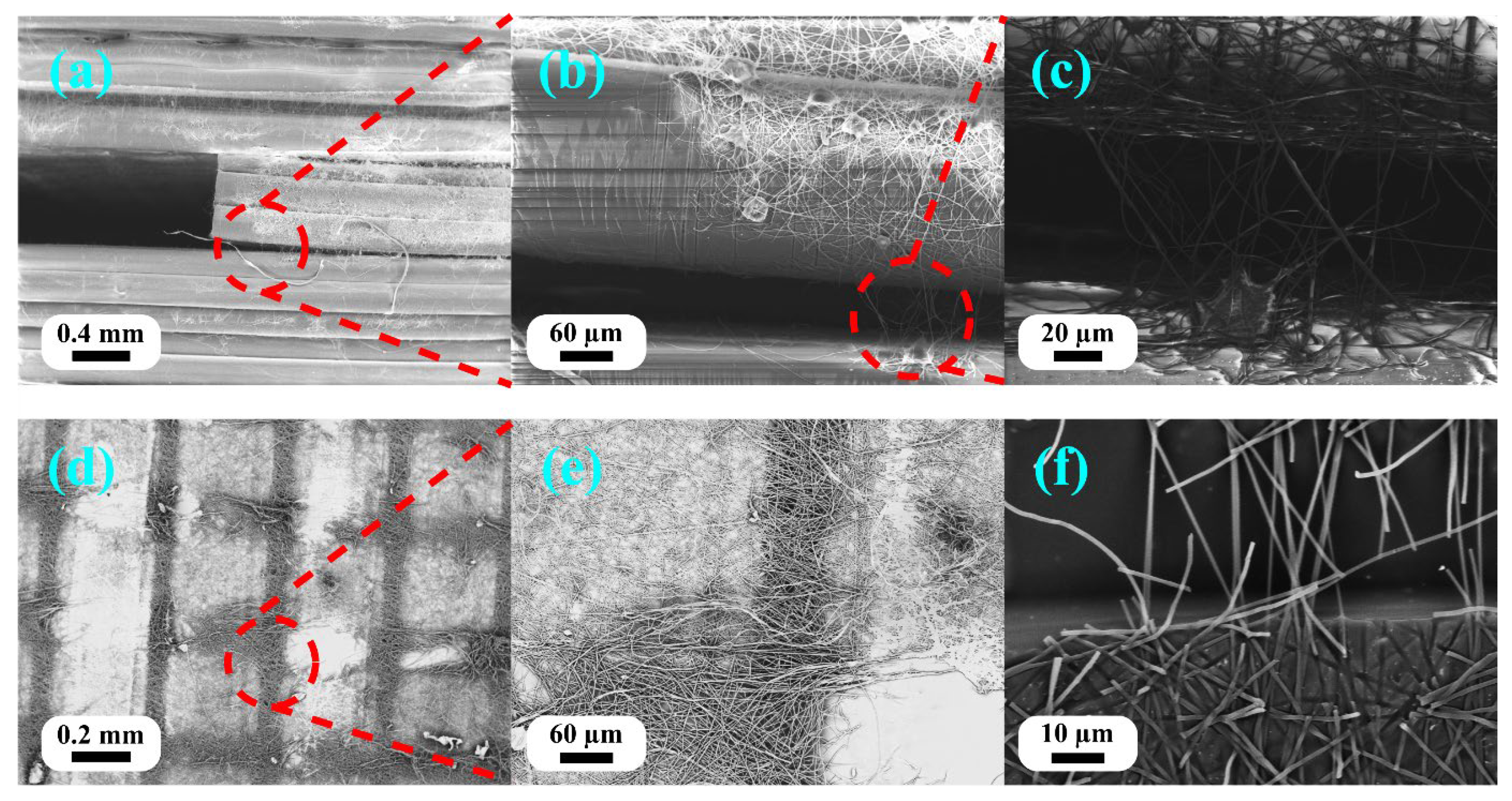 33] documented that the thickness of the nanofiber interleaves must be optimized to ensure proper bonding while maintaining the benefits of reinforcement. The present results demonstrate that hierarchical structure performance depends not only on nanofiber content but also on complete fiber–matrix infiltration by controlling the nanofiber mat thickness and processing temperature.