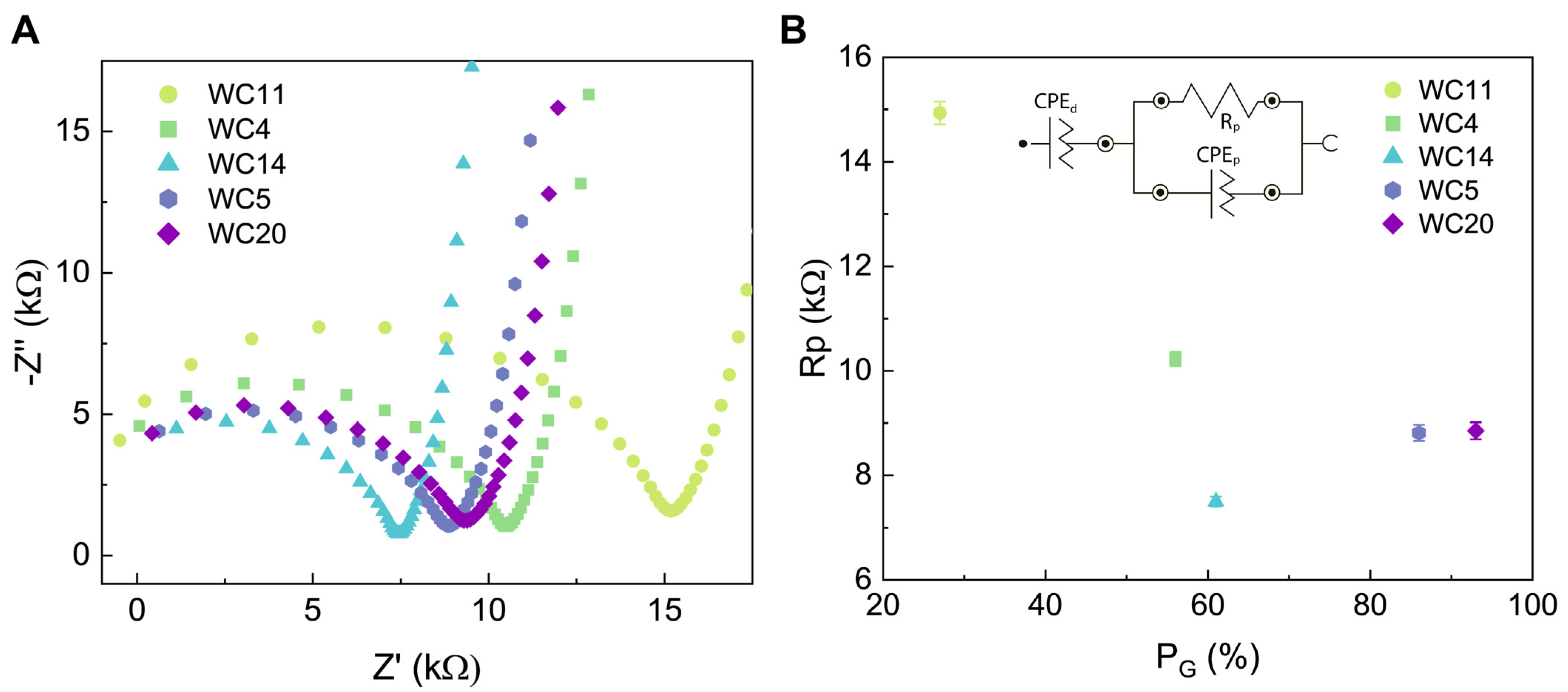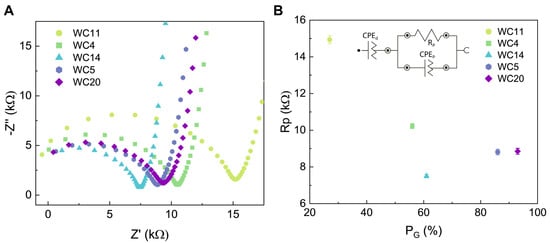 3.4. Results of the Electrochemical Impedance Spectroscopy (EIS) Analysis