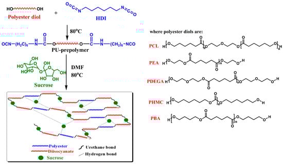 - Nagy, L.; Nagy, M.; Vadkerti, B.; Daróczi, L.; Deák, G.; Zsuga, M.; Kéki, S. Designed Polyurethanes for Potential Biomedical and Pharmaceutical Applications: Novel Synthetic Strategy for Preparing Sucrose Containing Biocompatible and Biodegradable Polyurethane Networks. Polymers 2019, 11, 825. [Google Scholar] [CrossRef]