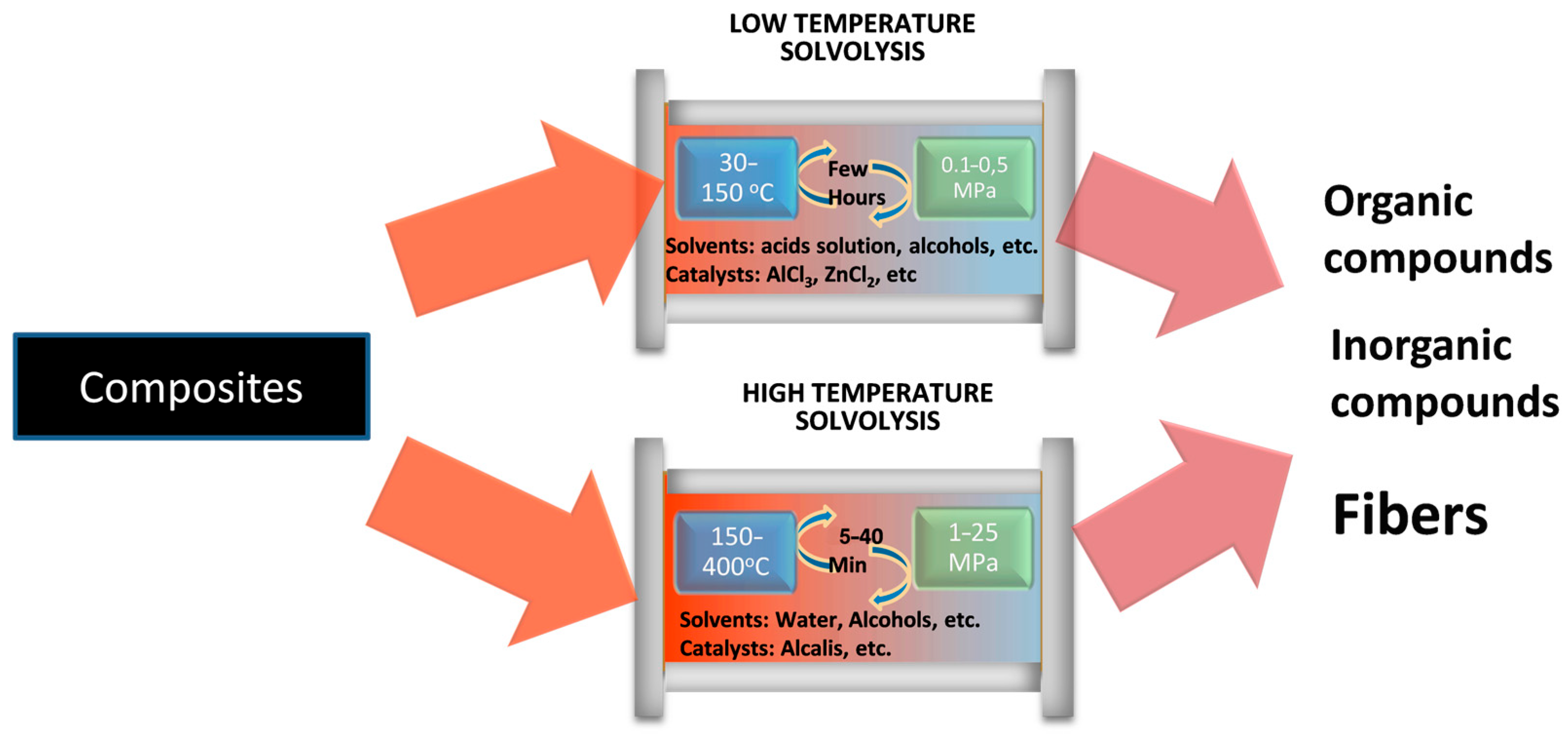 - Piñero-Hernanz, R.; García-Serna, J.; Dodds, C.; Hyde, J.; Poliakoff, M.; Cocero, M.J.; Kingman, S.; Pickering, S.; Lester, E. Chemical Recycling of Carbon Fibre Composites Using Alcohols under Subcritical and Supercritical Conditions. J. Supercrit. Fluids 2008, 46, 83–92. [Google Scholar] [CrossRef]