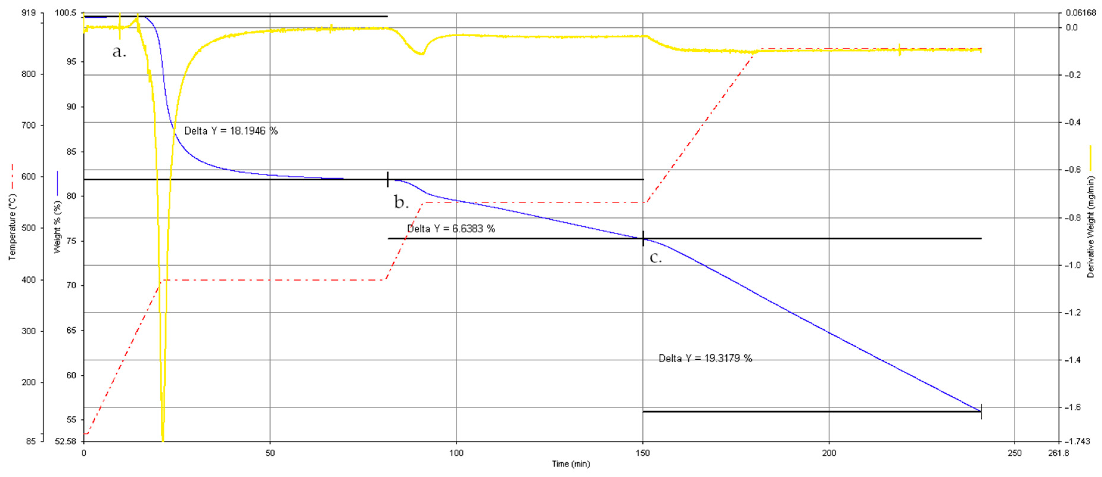 3.1. Thermogravimetric Behavior of the Original Composite Specimen (SpA)