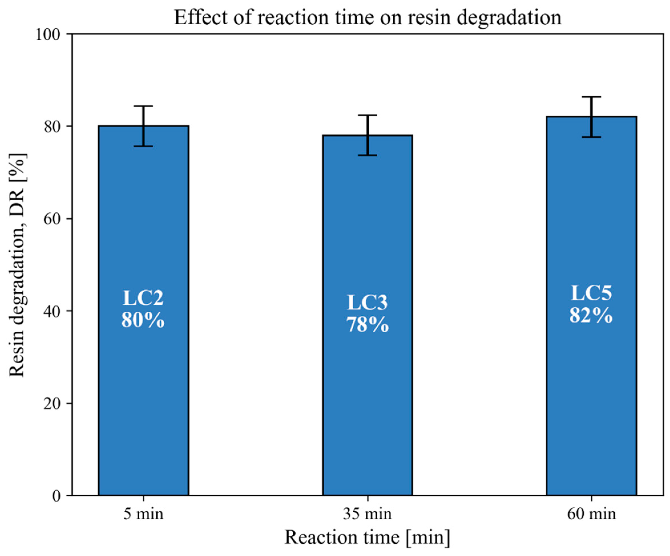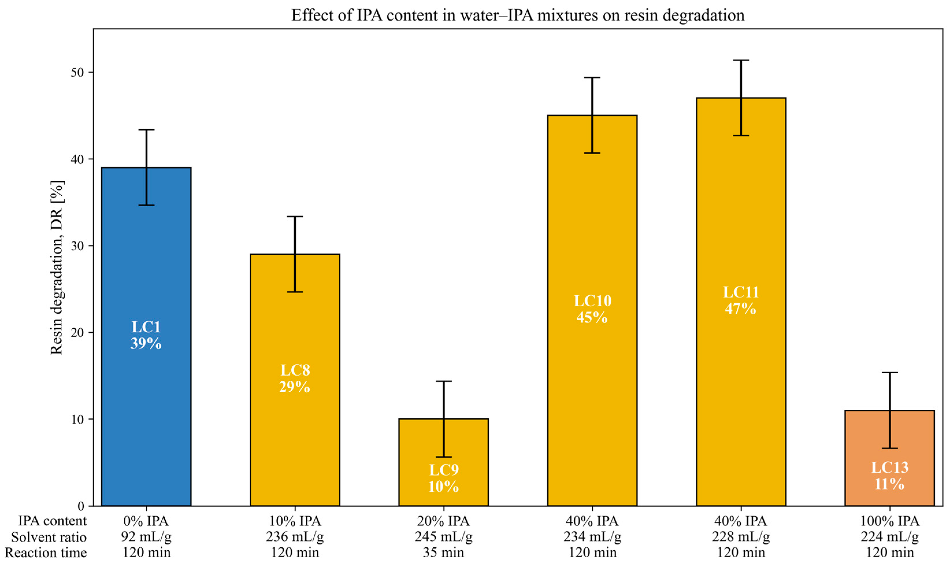 3.5. Effect of IPA Content in Solvent Mixture on Resin Degradation