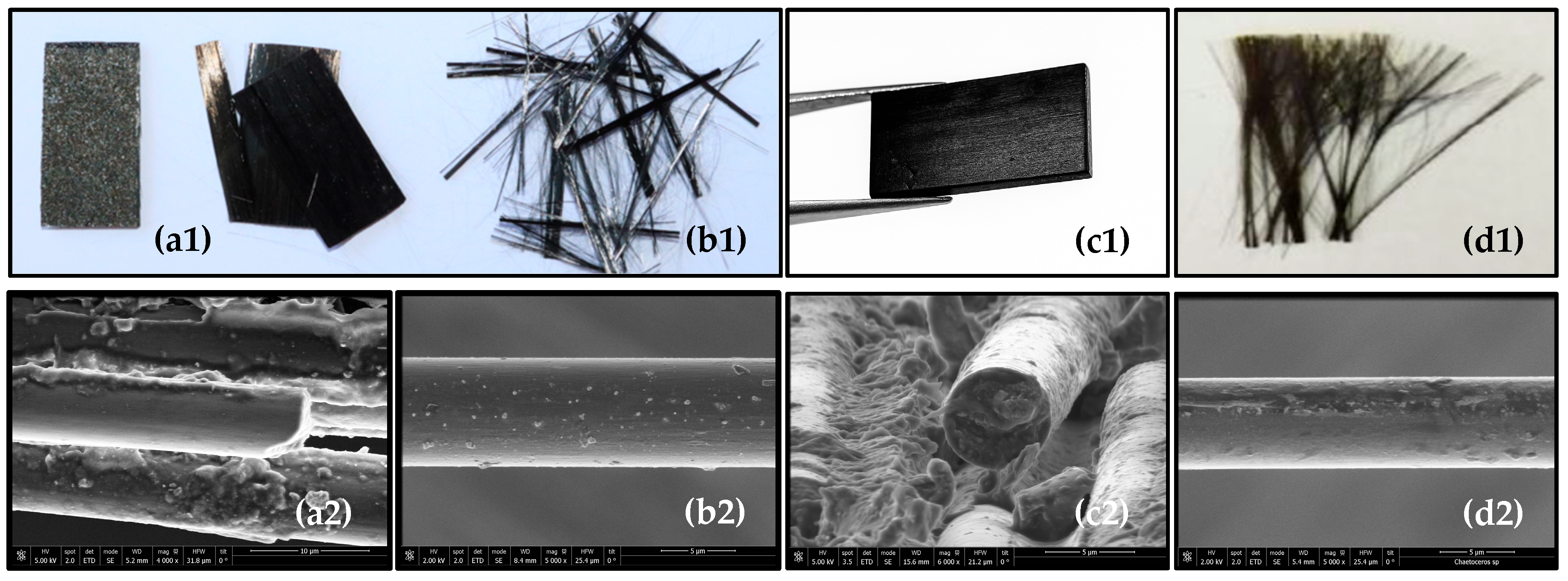 - Wu, J.; Gao, X.; Wu, Y.; Wang, Y.; Nguyen, T.T.; Guo, M. Recycling Carbon Fiber from Carbon Fiber-Reinforced Polymer and Its Reuse in Photocatalysis: A Review. Polymers 2023, 15, 170. [Google Scholar] [CrossRef]