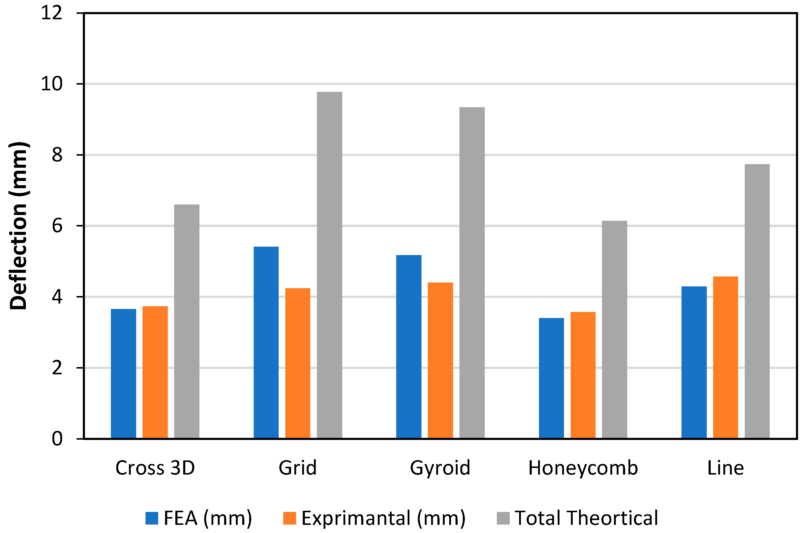 | Composite | Skin Material (Elastic Modulus, Solid) [AA] | Core Material (Effective Elastic Modulus, 20% Infill Density) [Equation (9)] |
