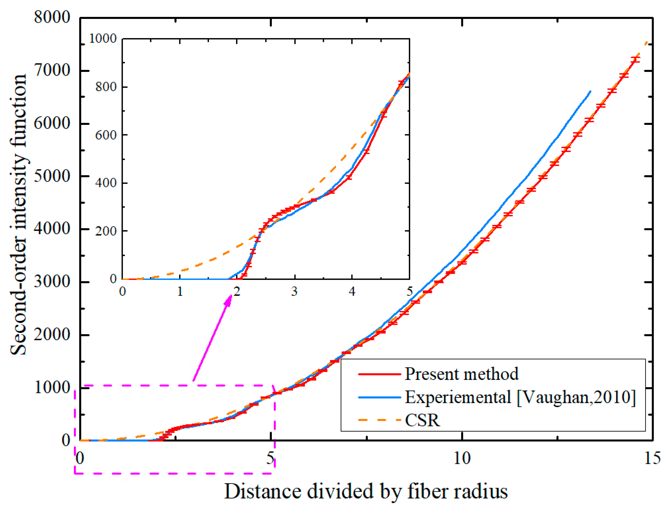 - Statistical examinations involve nearest neighbor distances, the second-order intensity function, and the pair distribution function conducted on the generated RVEs. These examinations reveal that the PINN-based methodology can accurately reconstruct fiber spatial distributions observed in actual composite materials, particularly at the crucial short-range level where fiber interactions are most significant.
