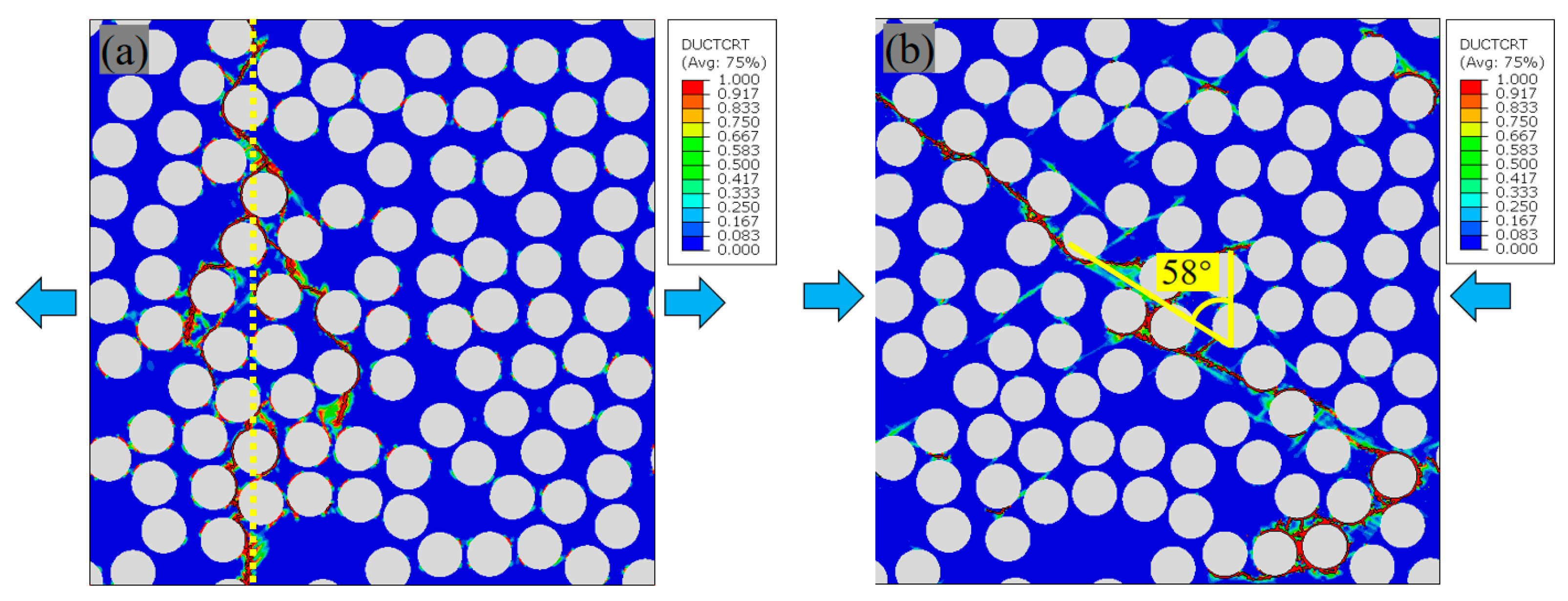 - Finite element simulations were conducted on RVEs generated by the proposed method to predict their elastic properties and damage behaviors. The results show that the predictions are consistent with experimental data, validating the effectiveness of the PINN-based method in generating RVEs for micromechanical studies in composite materials.