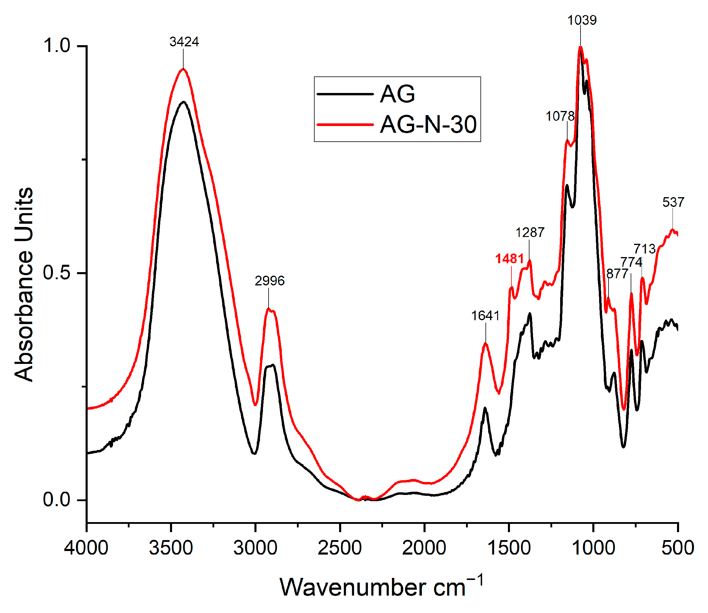 3.4. Fourier Transform Infrared Spectroscopy of the Arabinogalactans